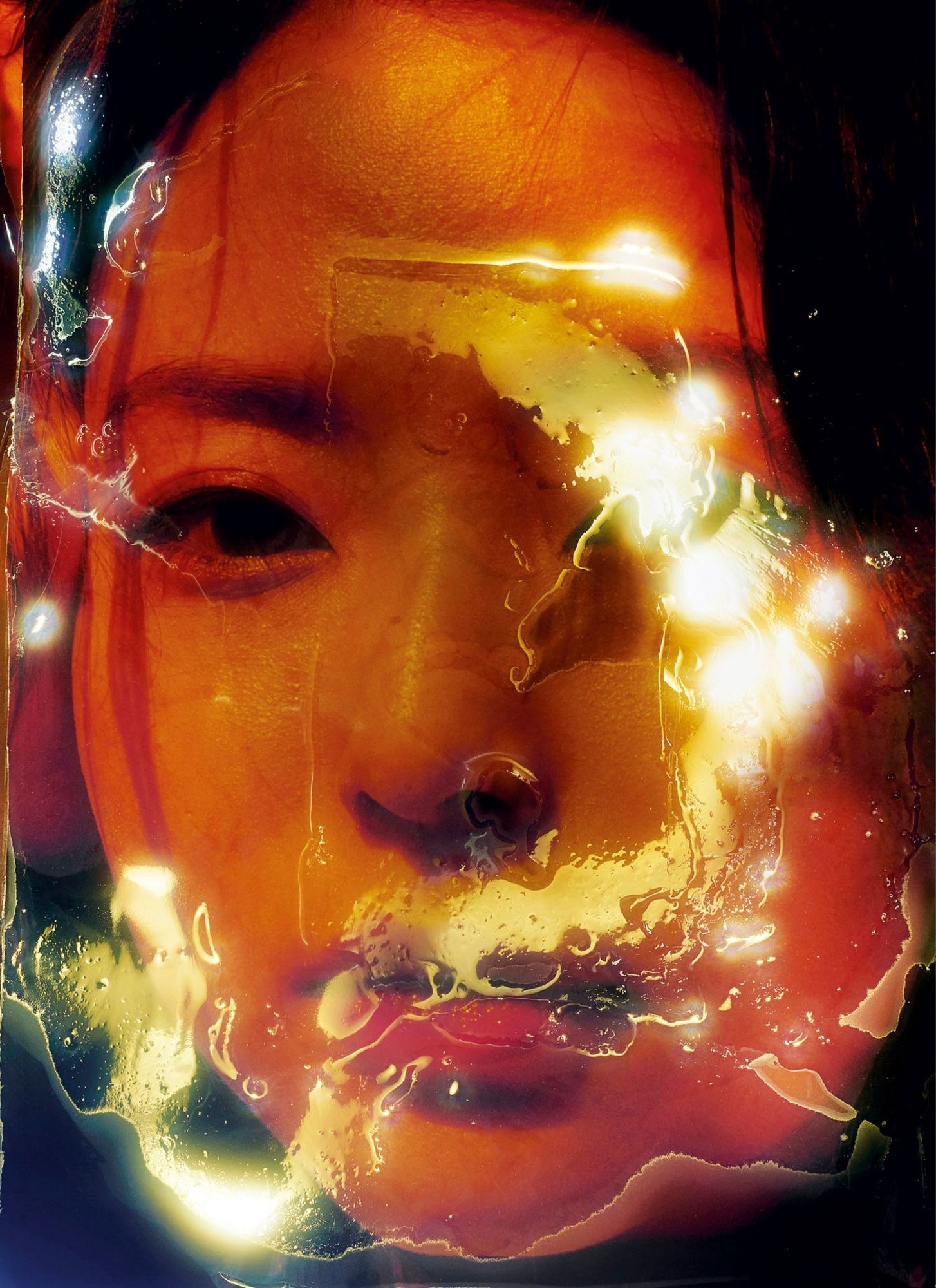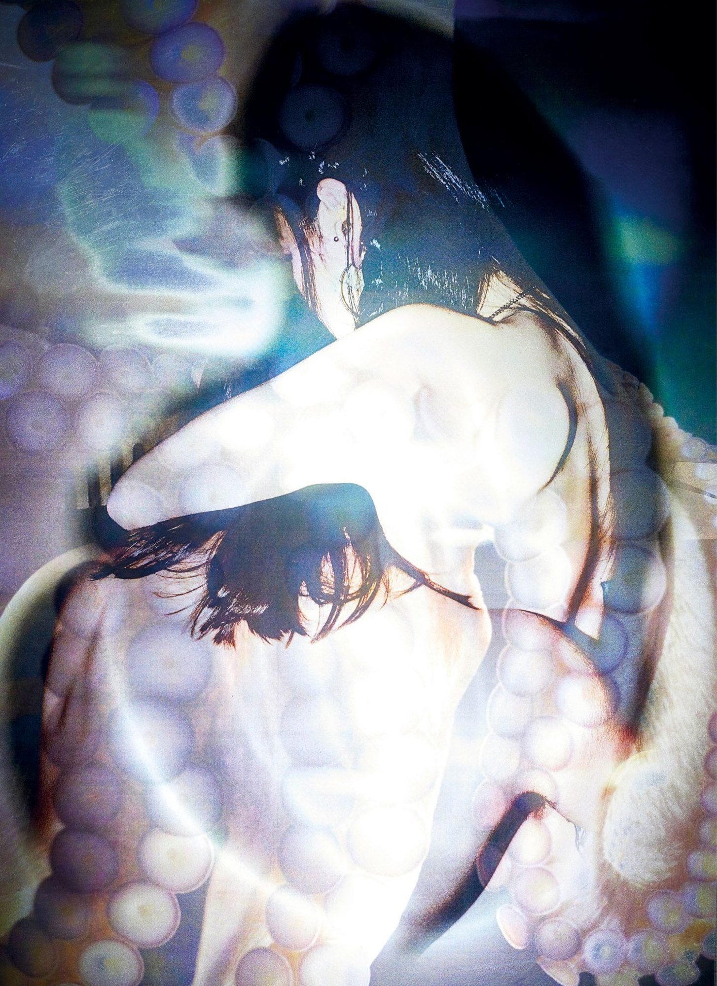 The result was a totally handmade method of printing his images onto plastic paper and sculptural resin, which drips naturally, followed by submerging them into water before they are fully dry, erasing layers of ink in the process. Bringing his analog images to life, particularly the darkest ones that would bleed the most, Simonet found a shape for the project. “I had this strong feeling of the city as something organic. You are part of living stuff, with all the highways and the subways. It’s really complex and chaotic. So that’s how I started to link my experimentation to Tokyo—to the feeling of the city,” says the photographer. Within each image is the potential for change and metamorphosis, just like the unpredictable nature of the city and a night spent under its spell.