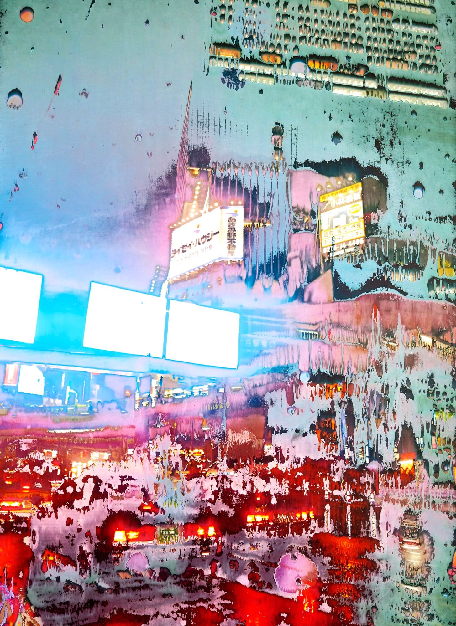 The Japan of Jean-Vincent Simonet’s In Bloom is not easy to grasp. Slippery and elusive, it seems to be a place dreamt up rather than in reality’s existence, its streets and buildings volatile, melting into pools of neon light. It’s Tokyo and Osaka at night, cast in the weird color spectrum of a man-made city glow. Named in honor of the extravagant artificial flower bouquets brought to christen new clubs, and as an homage to an intoxicated rendition of Nirvana’s In Bloom in a Tokyo karaoke bar, Simonet’s series of mutating, drippy images attempt to capture the life found in the dead of night, before the day begins and the reverie is over.