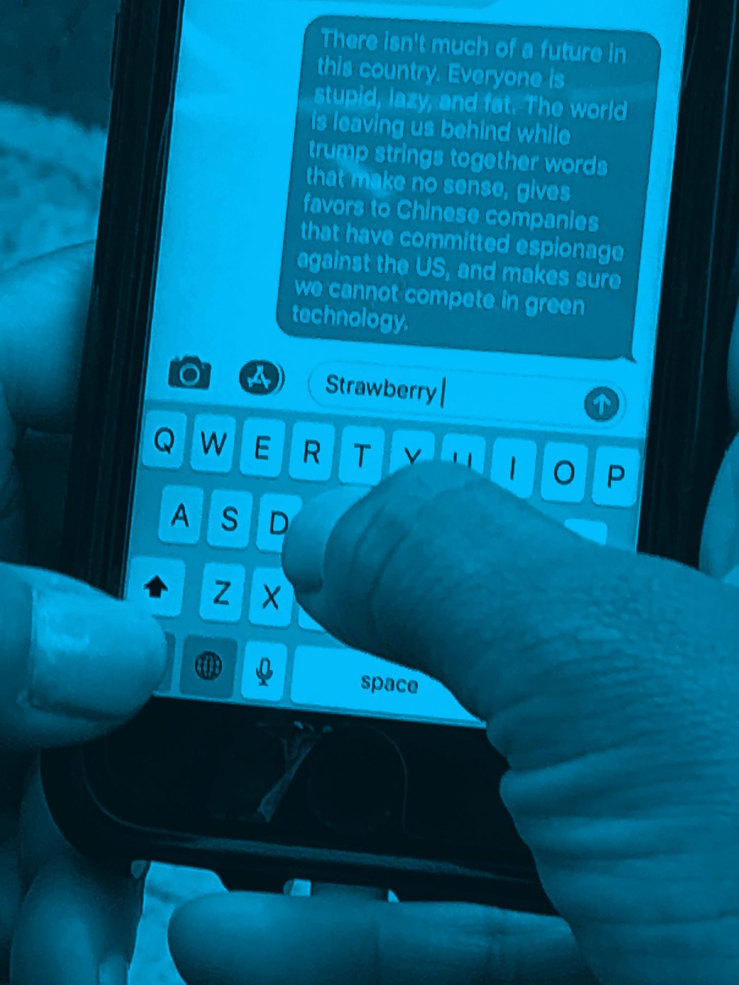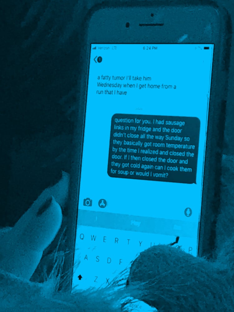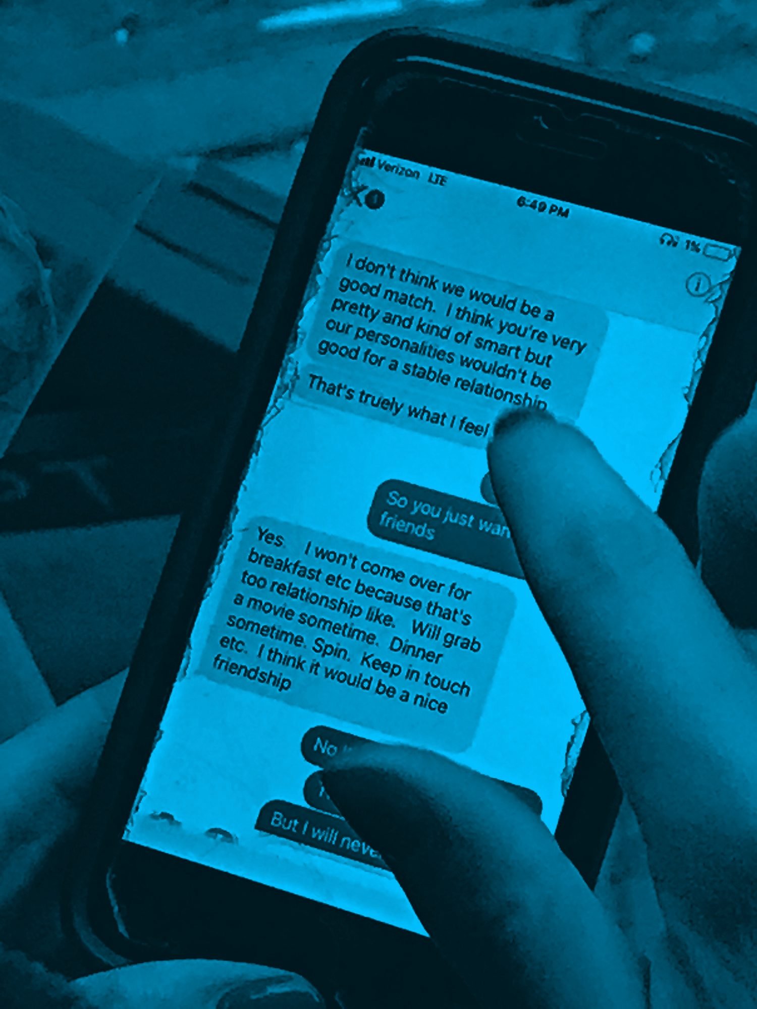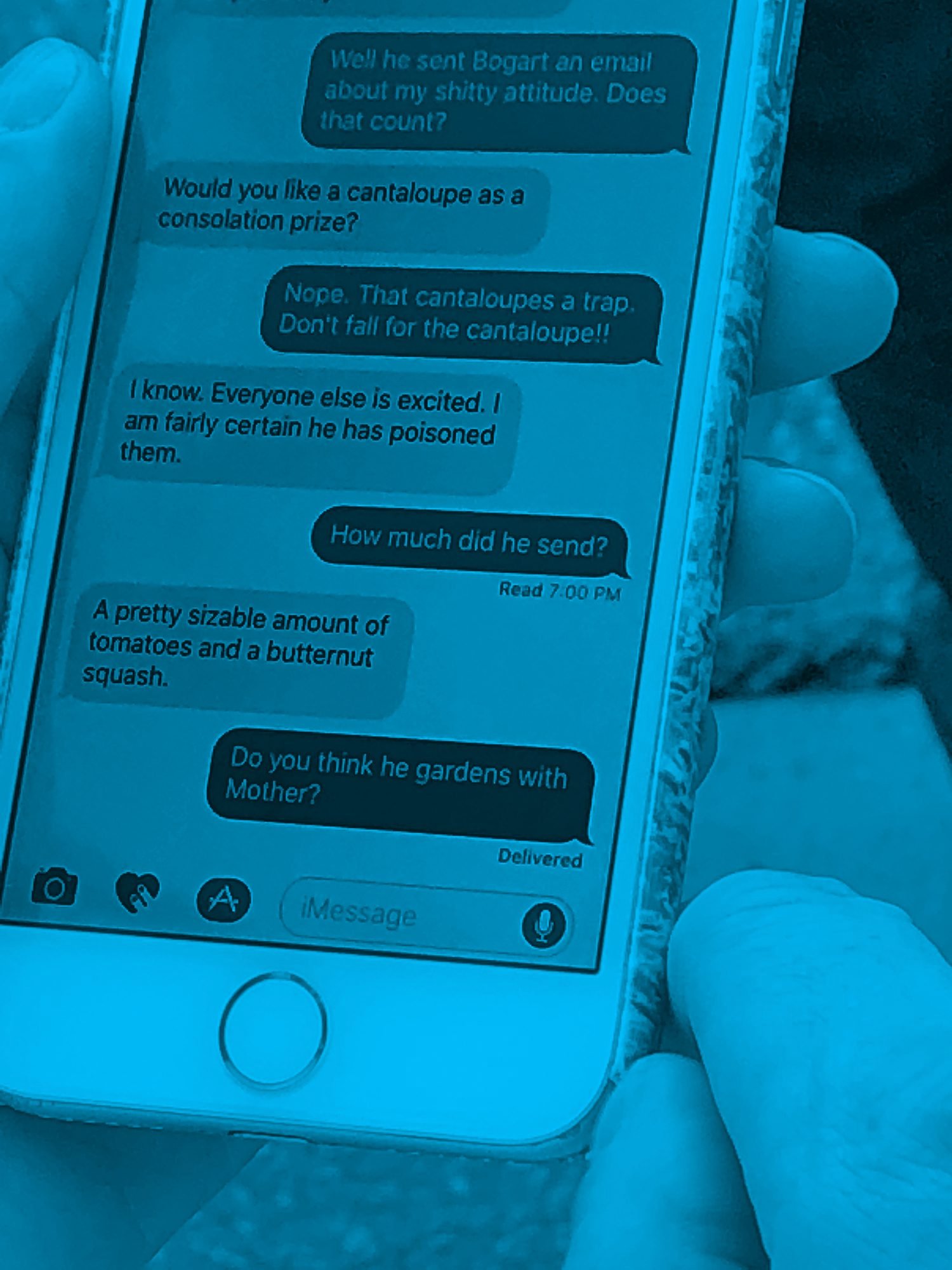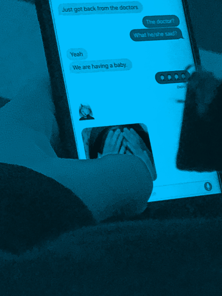 While the phones are fairly uniform and standardized, pictures include the fingers and nails of their users, the occasional strands of hair, a cigarette. It is a technology that is very much entangled in our lives. And bizarrely, texts now seem to be preferred to speech, even for the most intensely personal news, such as: “We are having a baby.”