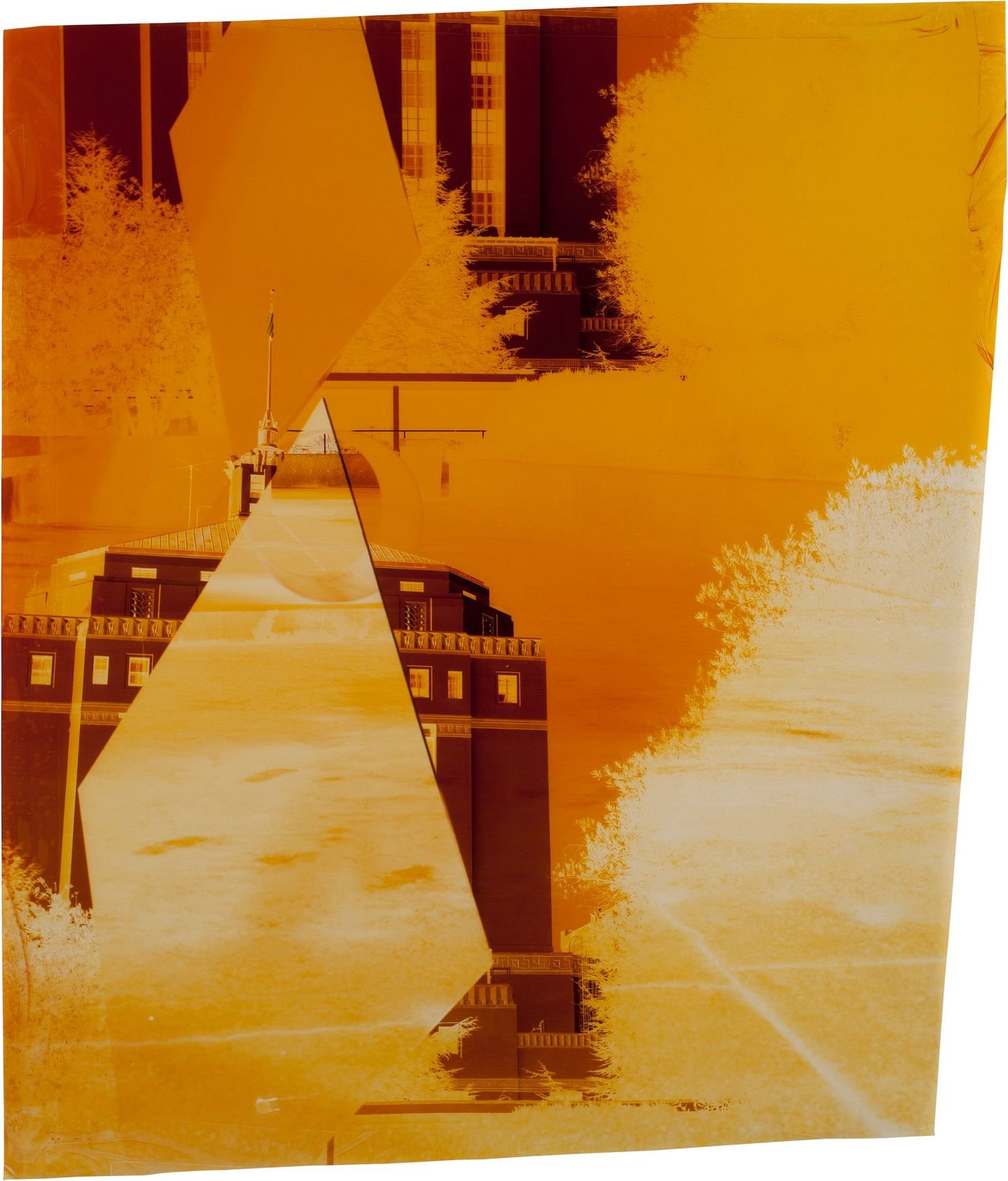 JC: Yeah. There was a series of work I did in grad school where I was heavily experimenting with putting things on the paper to really affect your ability to see the image, so there was much more tape. I was spray painting on the paper in the dark, and then also spraying oil soap on before I’d go out and take the picture. Applying all kinds of tape to really disturb the image. And then, at the time, my mentors thought, “Wow, it doesn’t seem like it matters what you’re taking a picture of anymore. You have all this stuff going on and it’s almost completely obliterating the image.” But it was very much at that time like controlled chaos, and then I built this larger camera. And the idea was to go out and be more of a photographer and find these disruptions out in the landscape, but be more of a photographer.