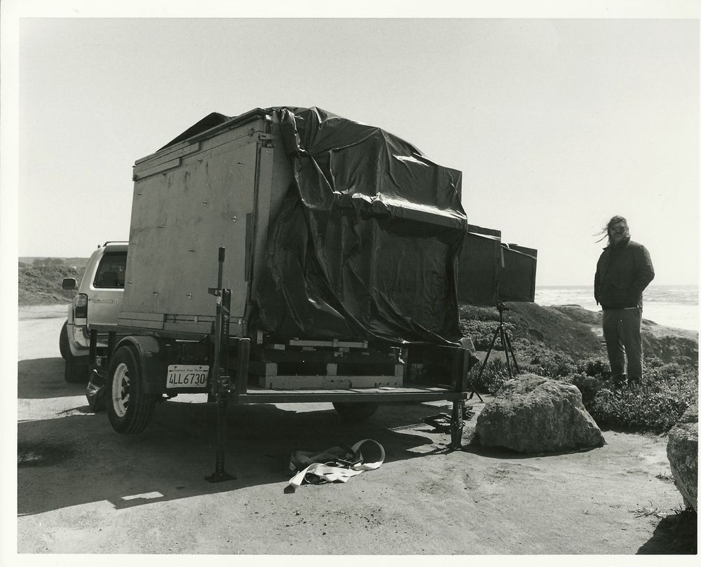 JC: The biggest I could go would be 50x80 inches, but I usually shoot 50x64 with it. Then, the other cameras I’ve built are on trailers or I put them in the back of a truck. They’re box cameras and they’re not camera obscuras necessarily, technically they’re not, but they have a process lens on the front and I have film backs for those cameras I’ve built, so I can load the film backs in advance. The film backs are very large, 40x50 inches. And I can load the film backs in the dark and they’re double-sided, and so with three film backs, potentially, I could go out and take six pictures in a day, whereas with a camera obscura I usually only take one, or—if I’m lucky—two pictures a day. But with this camera I can go out and potentially take more pictures, which is nice.