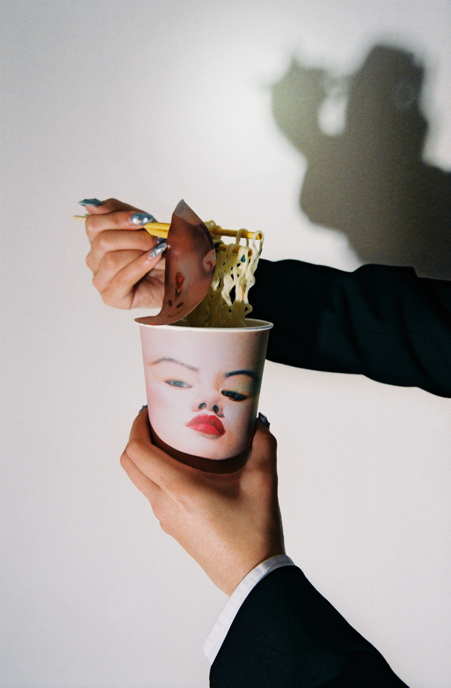 “In this way, I feel like now people’s faces have to be put onto products,” she says, and so she took that literally and began to place female bodies and faces upon collected objects. “I was in Tokyo at the time, so I went to their equivalent of a 99 cent store and bought stuff that I thought would be approachable for every class—objects from daily life.” Many of the items in Yuyi’s images are stereotypically feminine, and the images she places upon them are all female too—nudes, to be more precise, as a way to subvert the representation of the female body across the history of art and advertising.