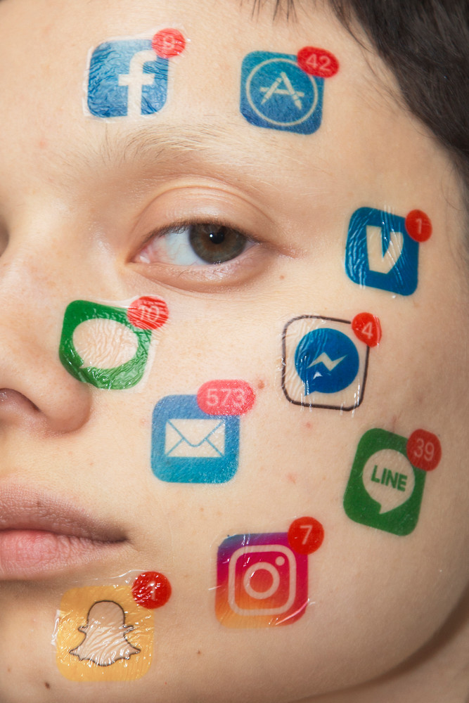 In 2015, Yuyi was travelling between Taiwan, where she had been working as a stylist, and New York, where she had been interning at a design studio. She wanted to move to New York more permanently, and that meant applying for an artist visa, which in turn meant raising the funds for it. The idea came to her to make temporary tattoos and sell them online to make some cash, so she bought the machine to do so and got to work. At first, she made them from her own illustrations, and then later, from photographs of a swimsuit collection she had designed. From here, her ideas tumbled into ever-more conceptual realms, and she began making tattoos out of social media-related symbols, like Facebook logos and ‘like’ buttons. She transferred them all over her own body, photographed herself and created new images out of them. Later, she used friends as models too. Both the tattoos and the resulting images were wildly popular, and the artist soon made a name for herself.