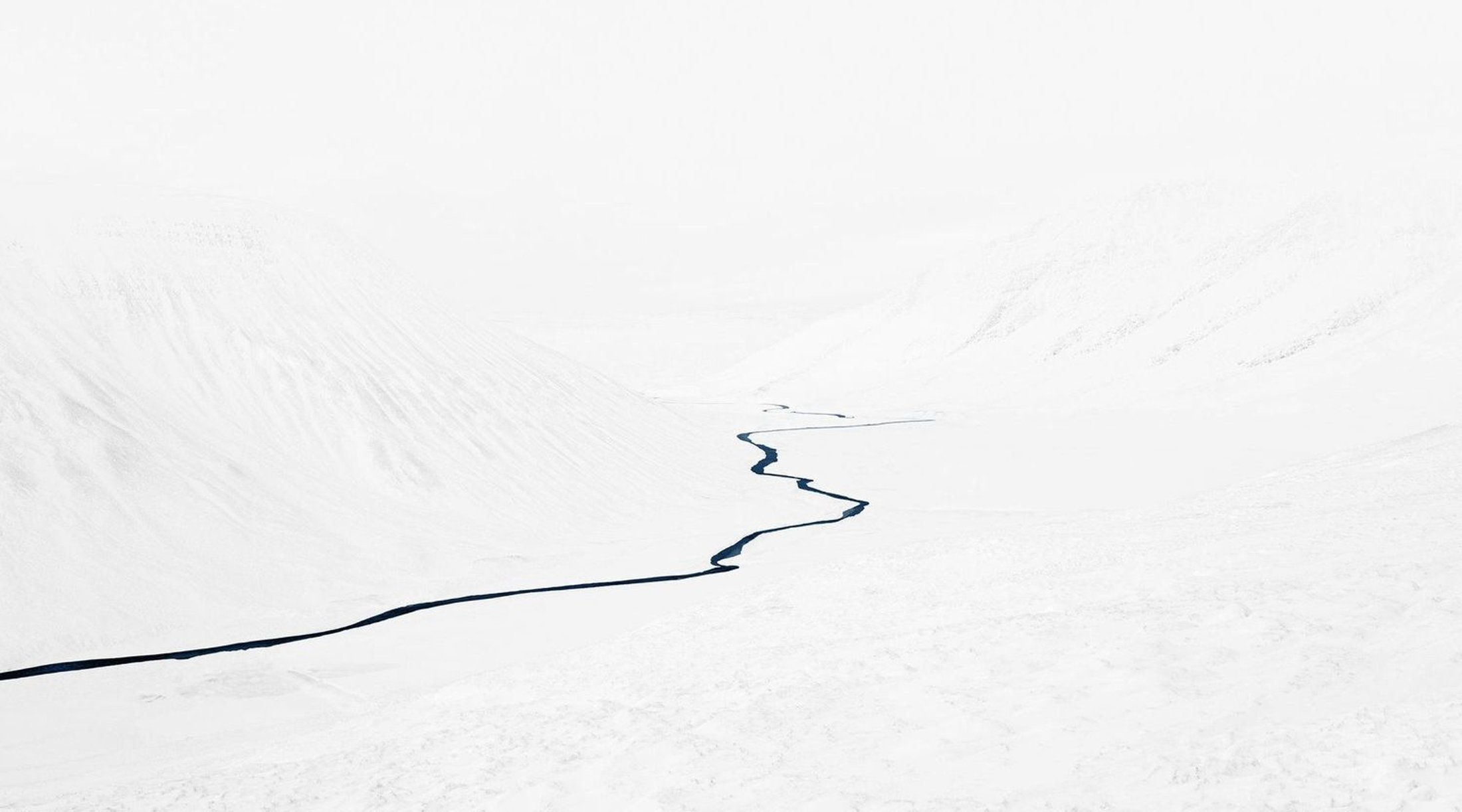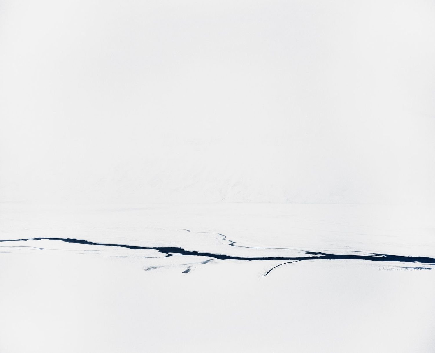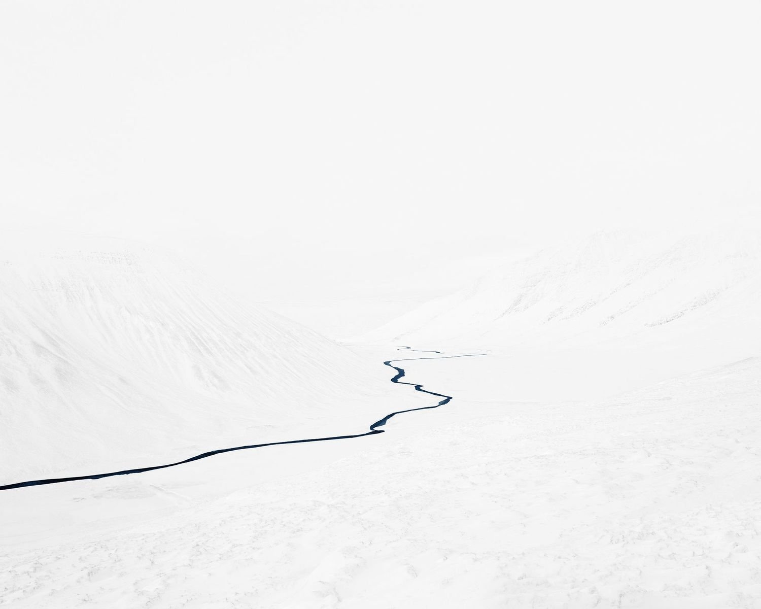 The series called “Streams” graphically renders the pristine winter landscape of northern Iceland. Starting out as trickles, the streams find their way down the steep mountains, peeking through snow drifts, meandering, disappearing and reappearing in no coherent fashion.