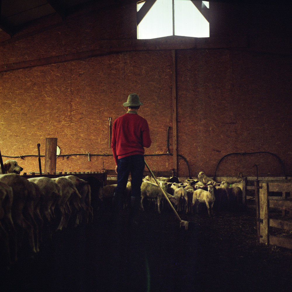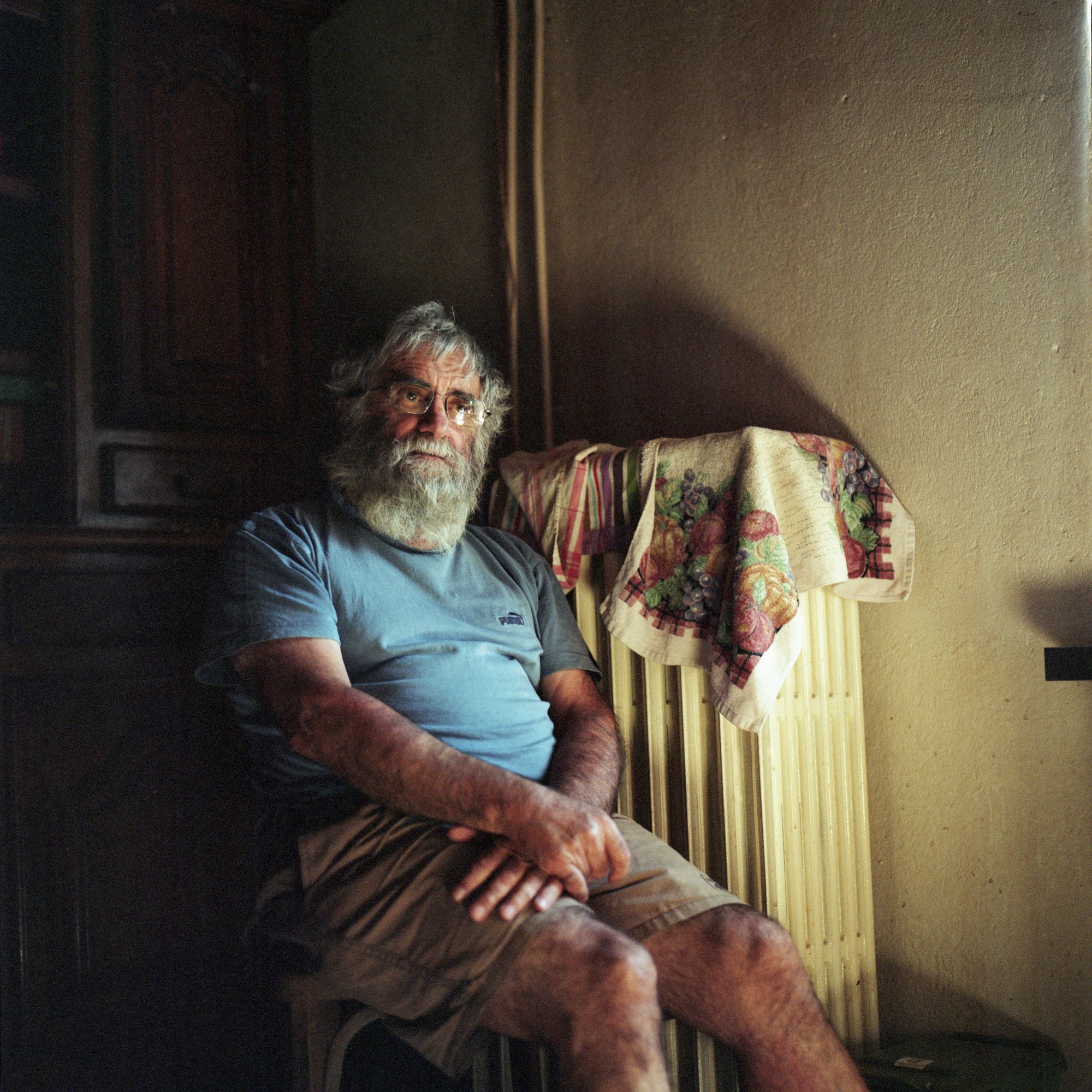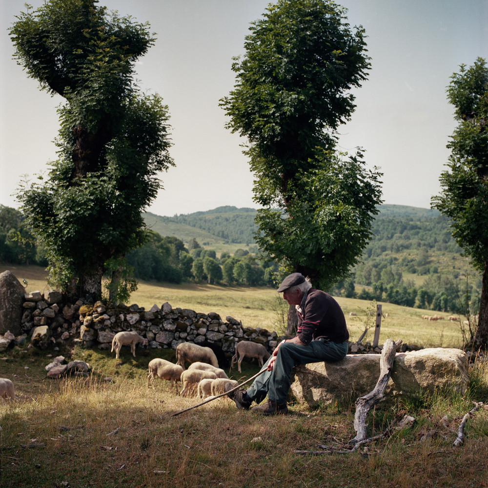 Oreille Coupée is a story told as much through writing as it is through photography. Each subject in his portraits have been affected in some way by a wolf, and the artist was intent on sharing their varied experiences. In one portrait, a man who hails from another part of France stands next to a stuffed wolf shot in the 1970s. In another is a young naturalist that has been tasked with tracking the wolf’s movements. Several farmers and sheepherders also feature, and they ruminate on the return of the wolf and on their responsibilities as stewards of the land.