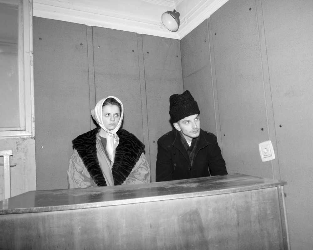 She and her cousins, dressed in their parent’s clothing, pose in some deliberately absurd and fraught situations, to try to understand what it must have been like living under the constant fear of Nicolae Ceaușescu — always trying to hide, lay low, and survive, while barely expressing any strong emotions like love, joy, delight or surprise. Even what they displayed in the privacy of their own homes — art on the walls, or books on their bookshelves — could become evidence to use against them, so a profound sense of self-censorship and distrust hung like a pall over ordinary daily life, and continues to define everyday interactions even in the freedom of the present time.