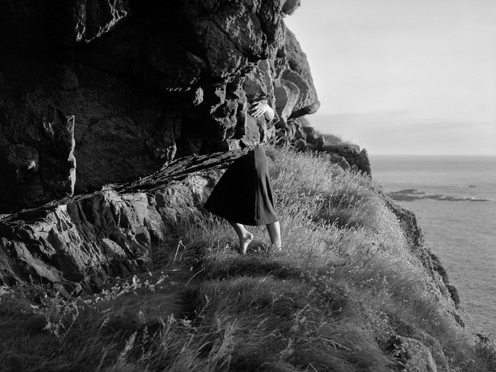 Le Pinacle. No 2. From the series “Never standing on two feet,” a visual response to my experience of viewing the Claude Cahun archive in Jersey, Channel Islands, UK. The photographs are performative self-portraits exploring the physical and cultural landscape of the island. © Clare Rae. Nominated by Susan Bright.