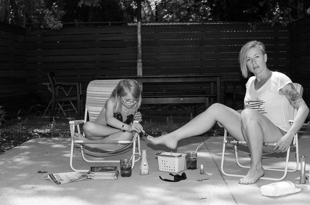 In this series of double self-portraits, mother and daughter pose with an aim to keeping the viewer in the perspective of an outsider looking in.