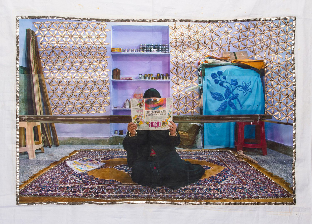In “Nā́rī,” Spandita Malik collaborates with Indian women in the creation of embroidered portraits on fabric, subverting traditional ideas of artistic production and opening a space of creative freedom.