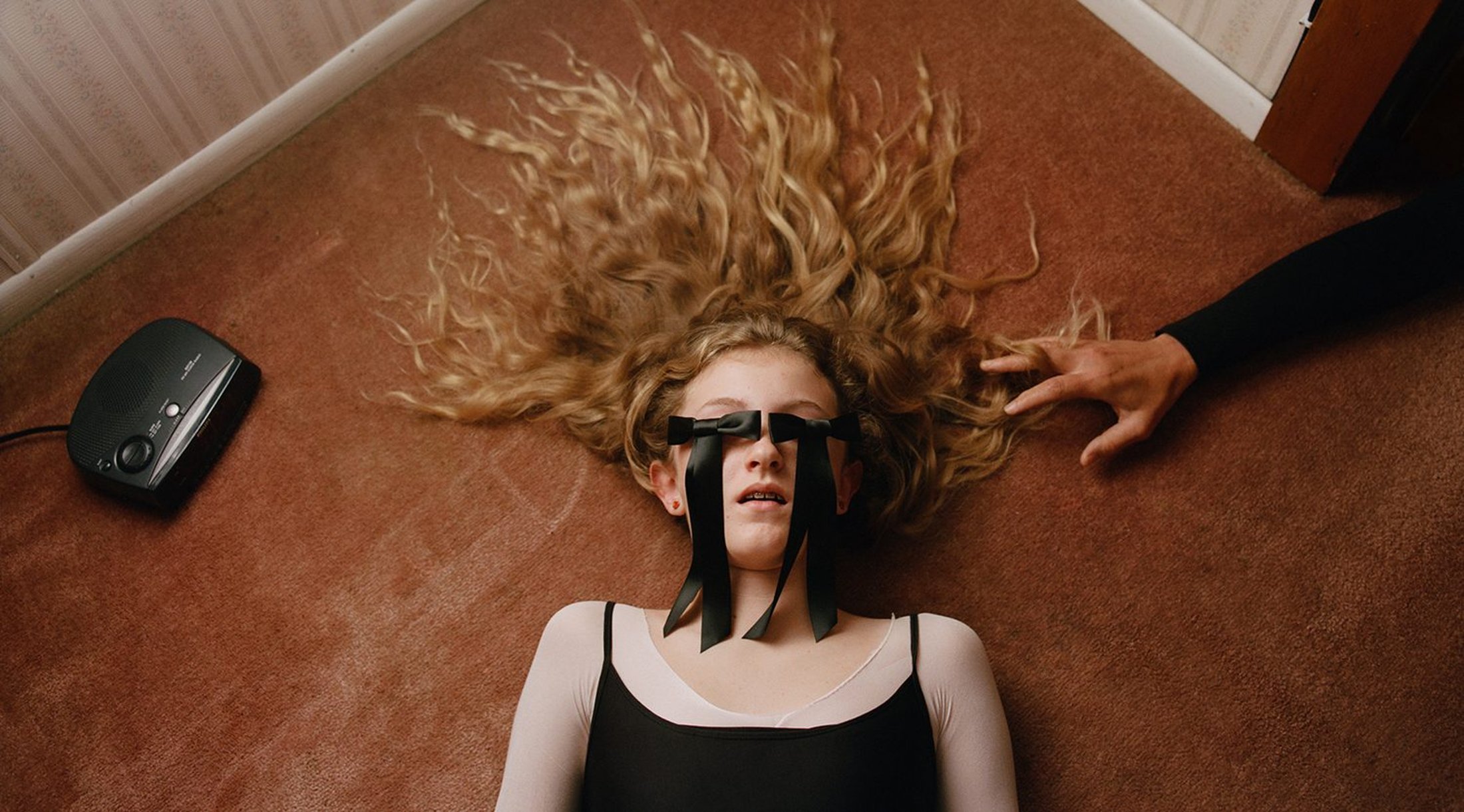 Though dressed in prim white tights, frilly socks and black patent shoes, there’s a sense of restlessness in the air, the wilderness of the outside world present on the muddy soles of one of the girls. In the last picture of the sequence, a group portrait where three gazes meet ours, a view onto a luscious green exterior gestures towards the end of this coming of age and the unknowns of the future that lie just beyond the door.