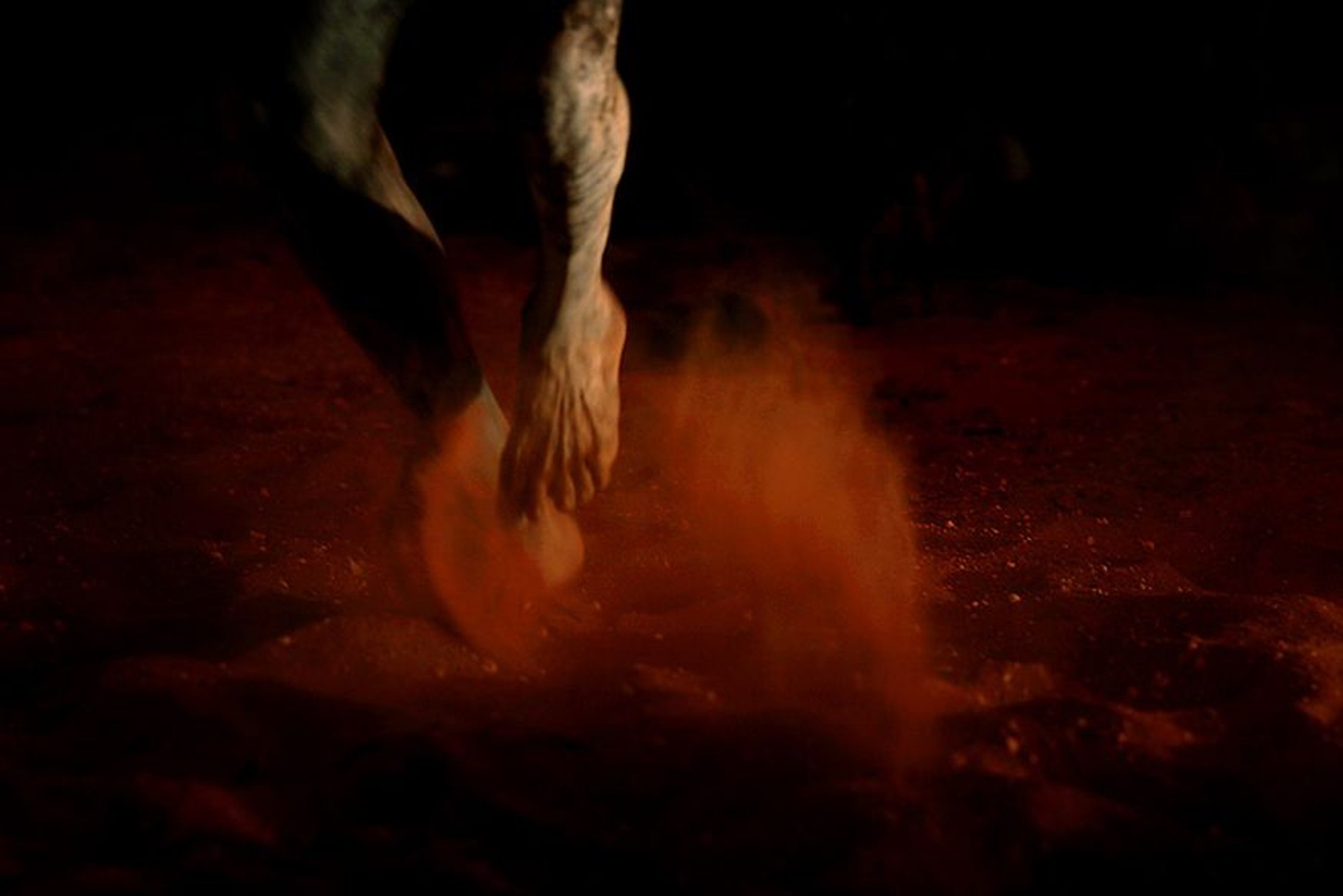 Lorena Vaschetti makes the darkness her ally. The formative elements of the pictures are established as shining patterns in a dominant shadowland. It is the artist’s choice that the photograph becomes interesting when the lens is turned towards the invisible, the archetypical in the ritual; played out in the red desert of Australia.