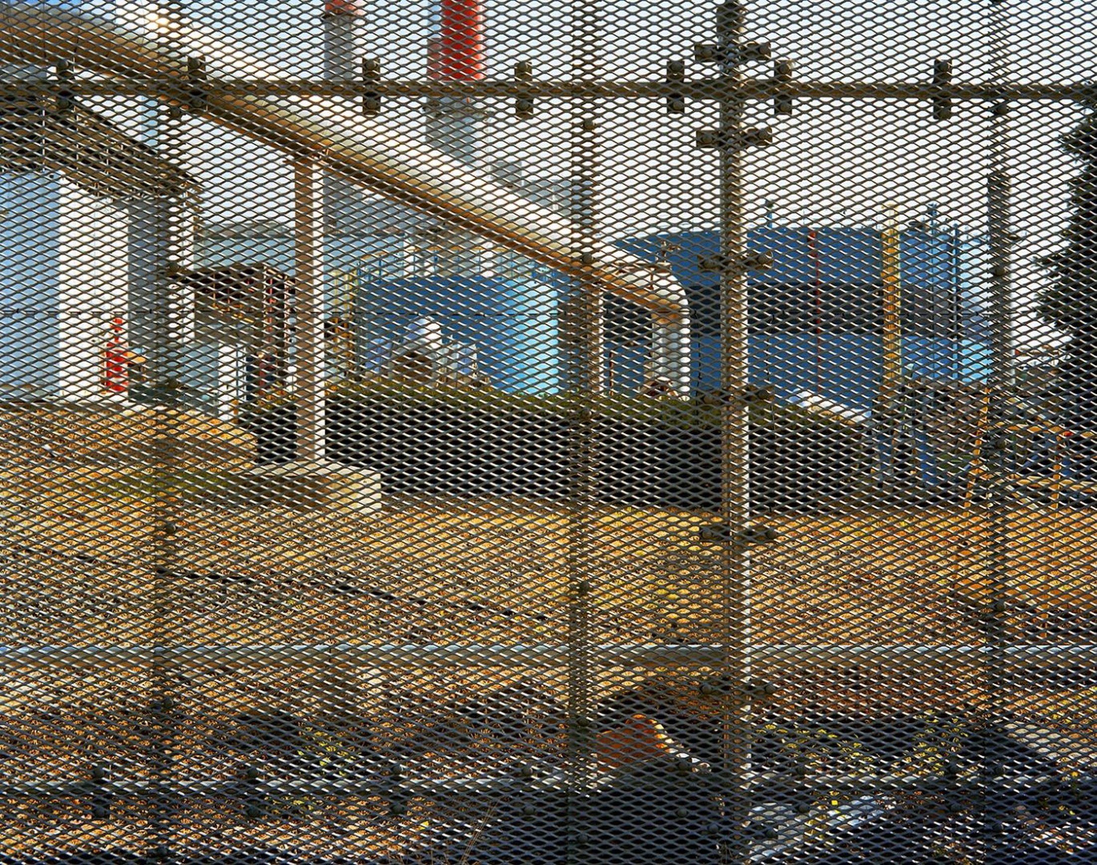Industrial site, 2004. An abstract composition using industrial materials and a fence in the foreground to break everything up into equal sections. © Luis Mallo