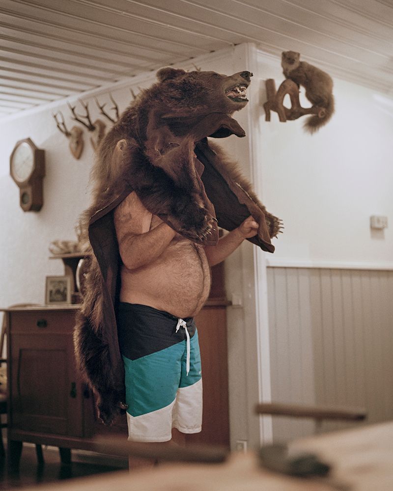 DH: I’m so glad you did. One of the most compelling things about this project is how the historical and the contemporary are mixed together. You don’t shy away from including things in the images that put the work in a very specific time—like a 90s Volvo, bright blue boxer shorts, or a litany of Santa Claus masks. I wonder how you feel Älvdalen is connected to the outside world? Did you find it insulated?