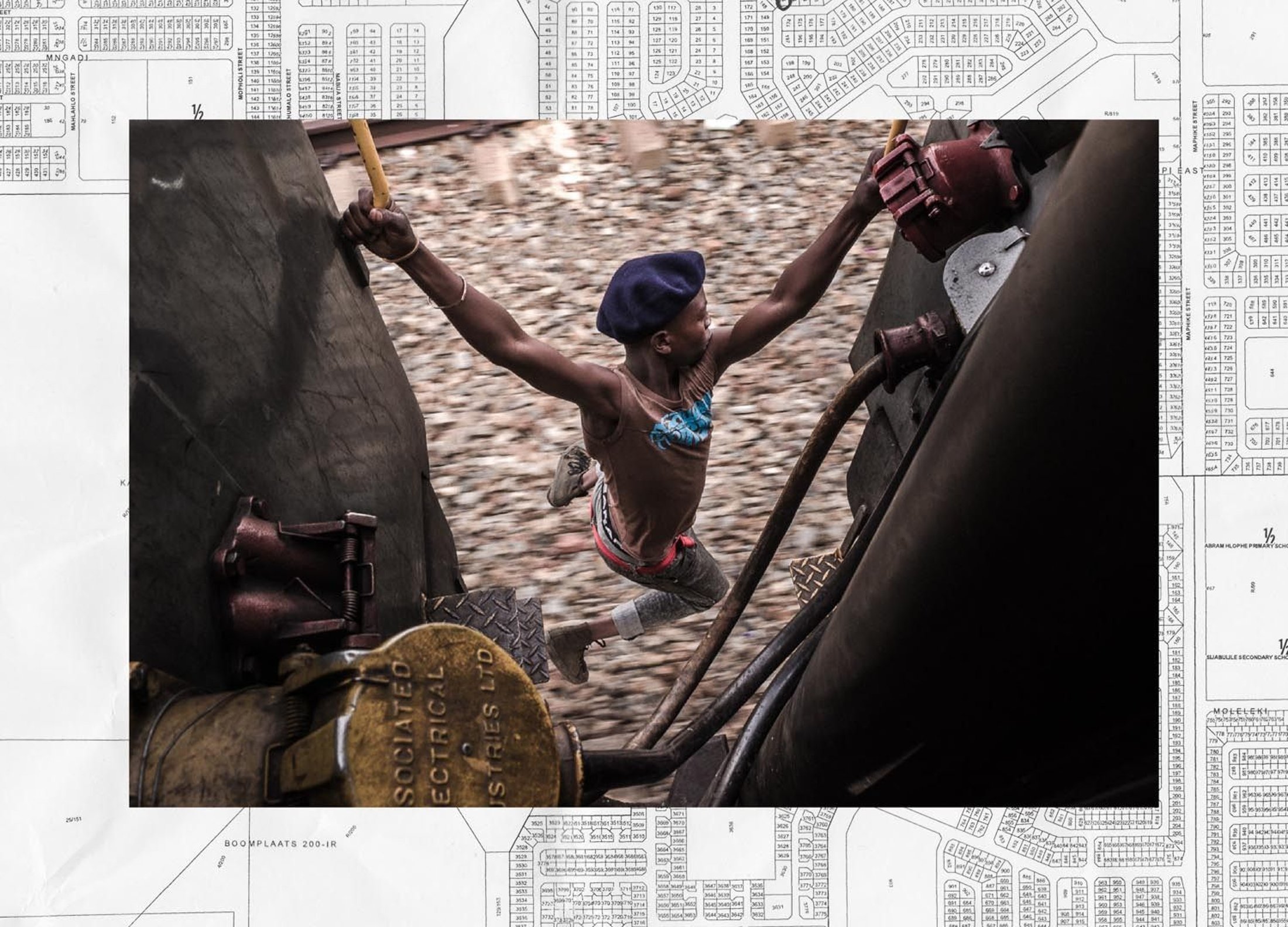 The act also has a protest dimension. Katlehong, where these images were made, is one of the largest townships in South Africa and played a key role in the history of the struggle against apartheid. Two decades ago, the place served as an epicenter for anti-apartheid's guerrillas. Today, for many of these youths, the situation of segregation remains more or less unchanged. In a place where violence, poverty, drug abuse and AIDS are rampant, train surfing represents the search for social redemption.