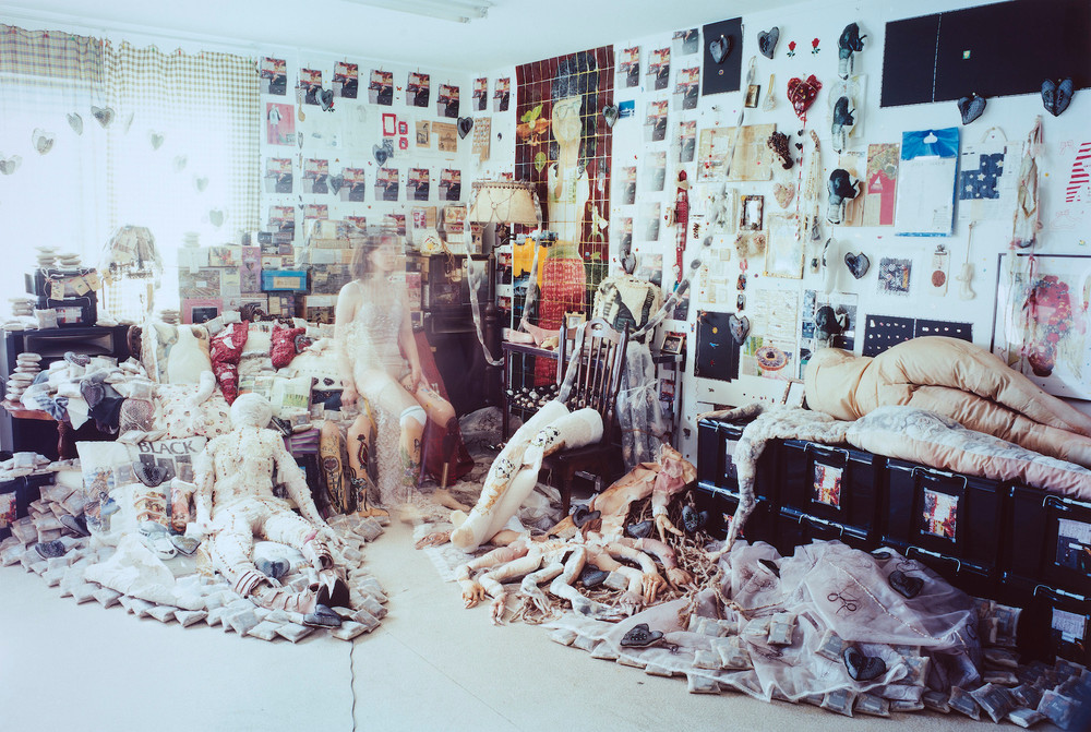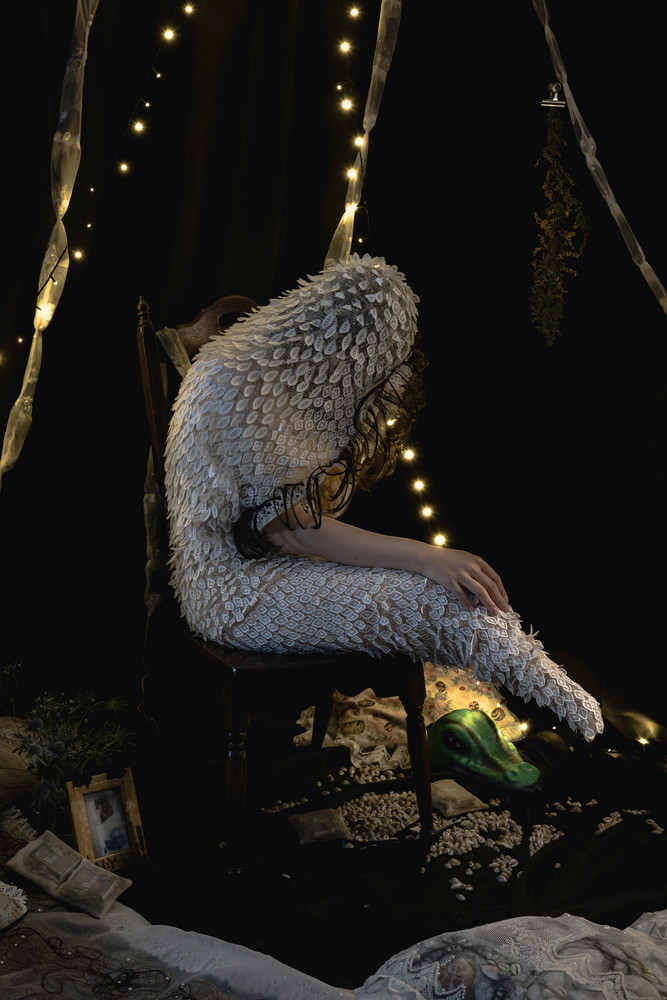 Now, Katayama is known globally for her dazzling self-portraits, her body surrounded by various objects she has crafted: prosthetics adorned with painted tattoos, lifesize mannequins embroidered with lace and sequins, toys and seashells strewn with glistening fairy lights. Her work has been exhibited in world’s top art institutions, including Maison Européenne de la Photographie, Mori Art Museum, and the 58th Venice Biennale. This month, she will exhibit as part of a group show at Foto Arsenal Vienna opening on the 31st of August, and in October she will show work at London’s Tate Modern as part of a display of its permanent collection.