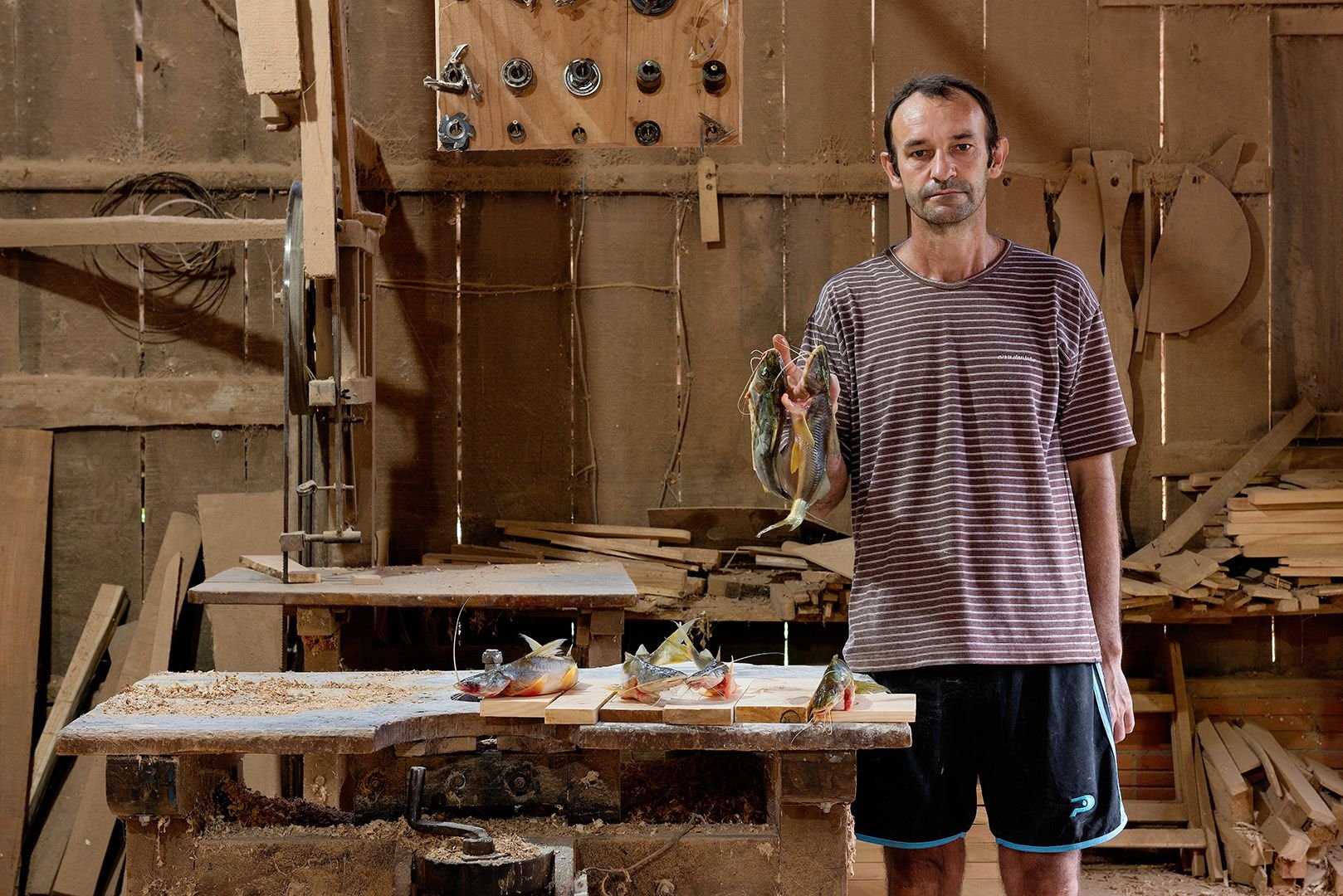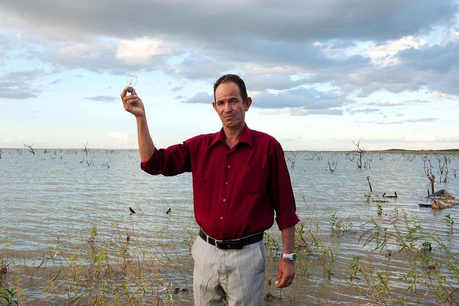 Ribeiro’s sitters are people in remote areas of Brazil who either have been, or are soon-to-be, displaced by the creation of dams for hydropower purposes. For the photographer, the act of giving voice and visibility to her sitters is not achieved by merely taking a portrait: full collaboration in putting the photograph together is central to the way she works. “For this photo shoot, each sitter was asked to choose a relevant place, as well as selecting an object that represented the feeling they have regarding their move due to the dam works,” she explains in her statement.