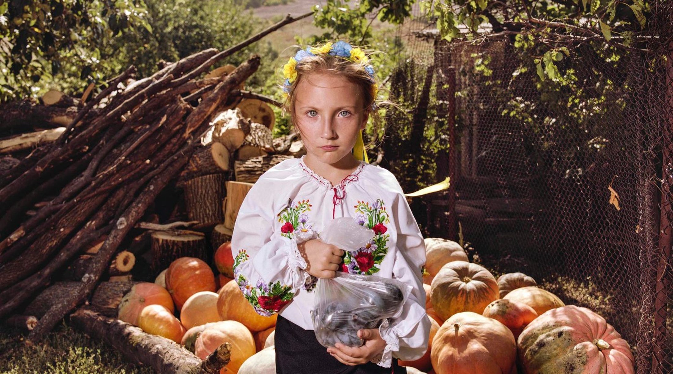 Alongside the pictures, Stop Tanks With Books also features short stories about the conflict from Ukrainian novelist Lyuba Yakimchuk, and research from the Centre of Eastern European Studies in Berlin about the millions of Ukrainians already displaced by the war. At the very beginning of the book, a map is printed too, contextualizing the region by showing us which parts were Russian occupied at the time of printing, and which parts were still under the control of Ukraine. A flurry of images of children immediately follow this, and they are interspersed with text that is printed first in Ukrainian, and then in English. Entitled Call to Action this text is a manifesto, clearly delineating the political circumstances, the human consequences, and what sanctions should be enforced.