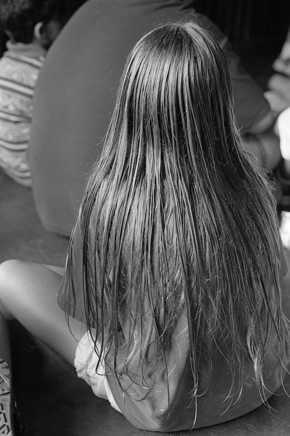 The sequencing of the book travels through a typical weekend of camp experiences, but the distinction between the different summer camps is never apparent. Here are children playing in the lake; there they relax in the afternoon, reading, drying off, spending moments alone; over here gathered around the breakfast table, dewy-eyed and still dreaming. In the end, Summer Camp finishes with the perennial event of any camp retreat: bonfires and candlelight rituals. The final image of the book is of a bus waiting to leave the next morning. Children embrace in the shared emotional experiences and new found friendships made at camp.