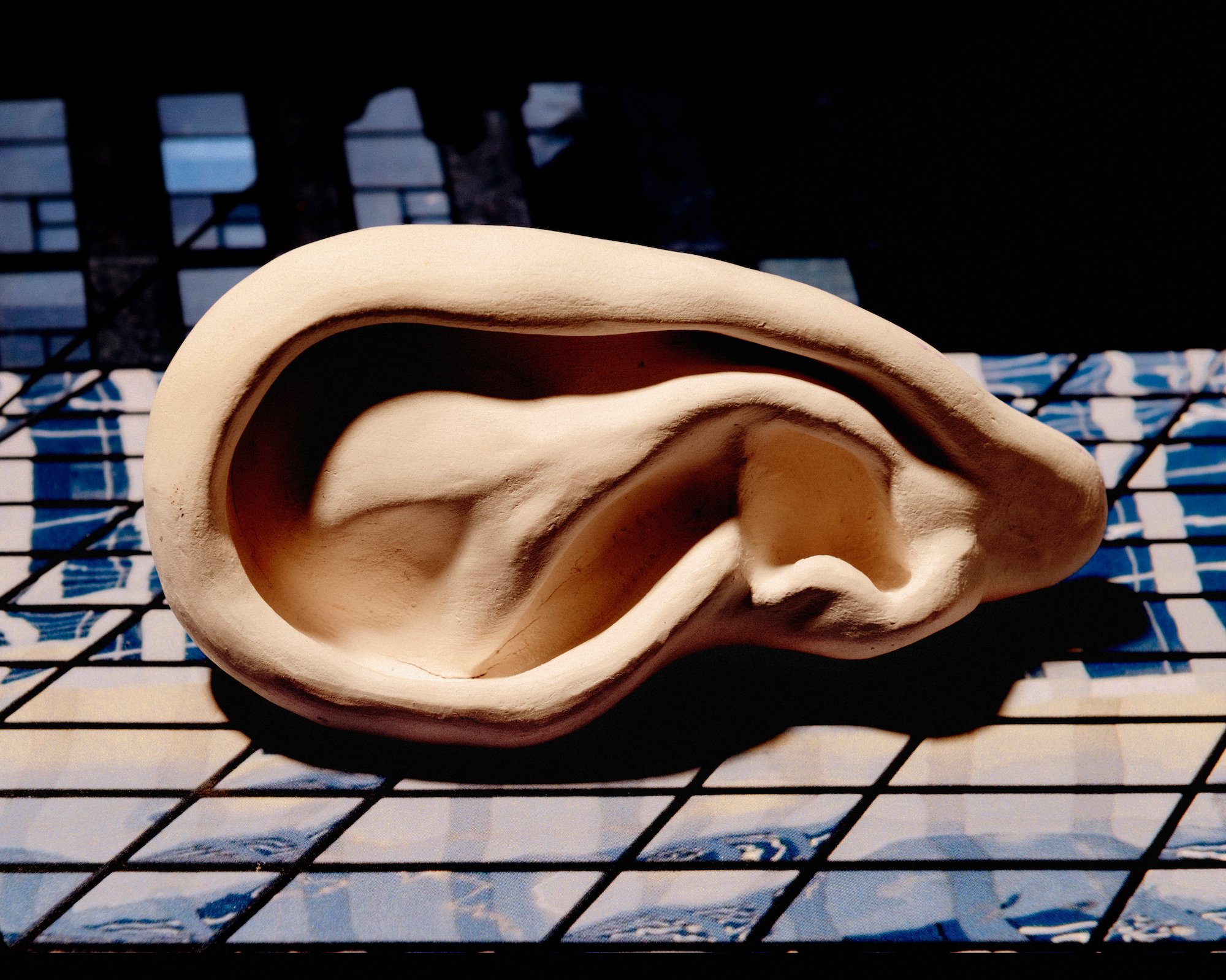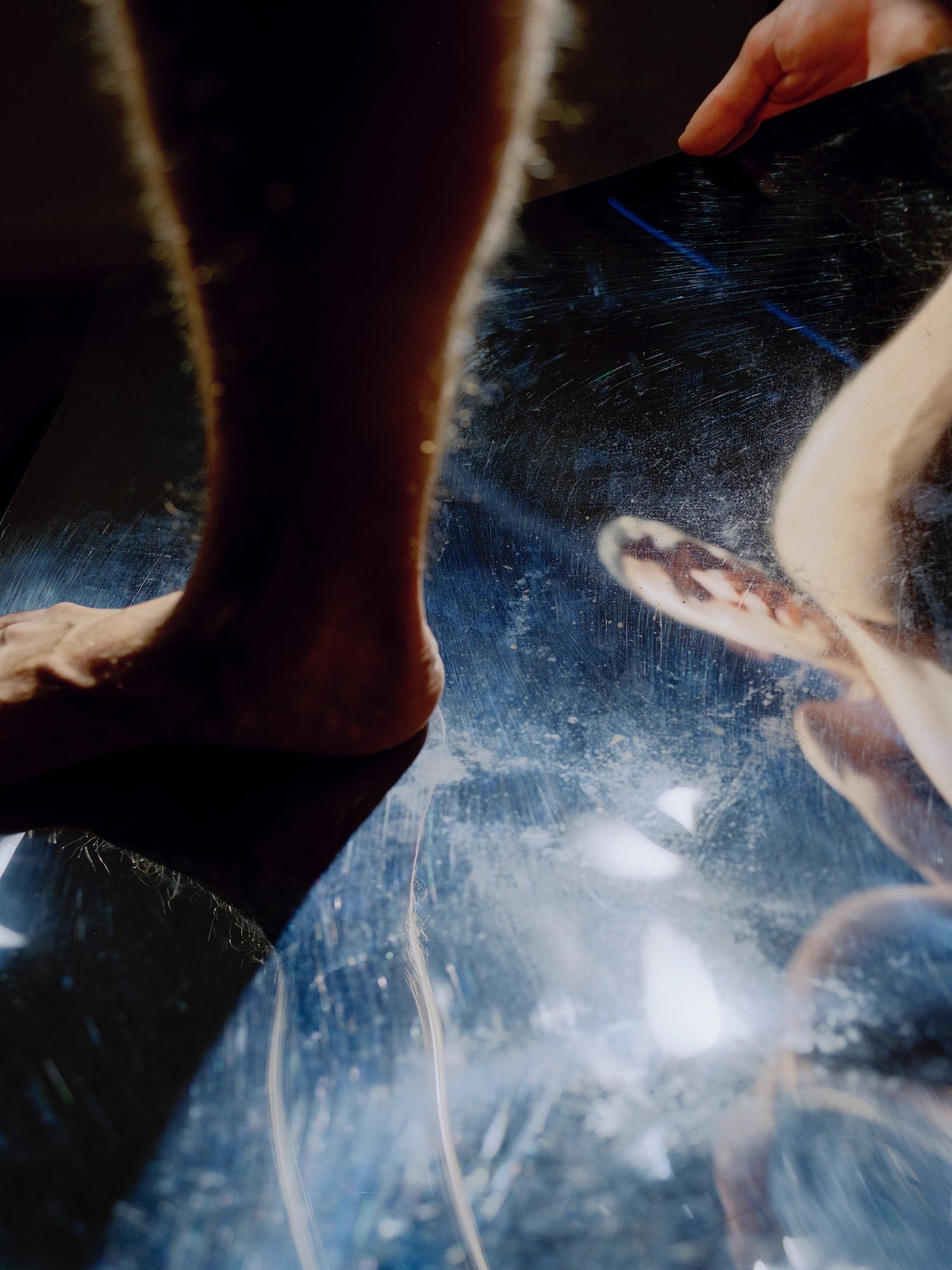 Certain body parts recur a lot in Croizier’s images. Hands and feet, for instance, and eyes and ears too—the parts of us that reach and touch, listen, look, and assess. The parts that connect us to others and the world around us. “You’ll notice that most of the body parts I return to are extremities of the body,” he points out, “and I wanted to try to represent them also as fragments, existing for themselves, without the body they are usually attached to.” The foot, he says, for example, is often seen as one of the least noble parts of the body, and yet it is also one of the most mentioned body parts in psychoanalytic literature (tied, again and again, to both fetish and revulsion). “Therefore, having a foot and a head, which some might say is the most noble part of the body, meeting in one image really interested me,” he says thoughtfully. The corresponding image is tense and wince-inducing, and he’s right: it feels bizarre.