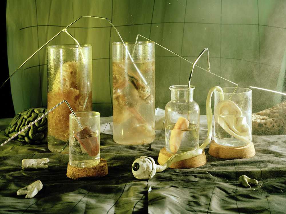 And so, inspired by the imagery and aesthetics of everything from his favourite horror films to “photographers who portrayed outcasts, such as Roger Ballen”, Croizier began making photographs. At first, he started to collect odds and ends around his house and studio to stage scenes in front of his camera, and right from the beginning, he began using his own body in his pictures too. He wasn’t sure where he was going, choosing instead to work intuitively and see where it took him.