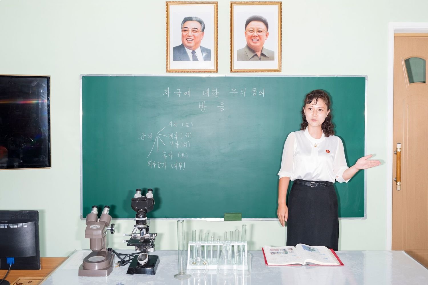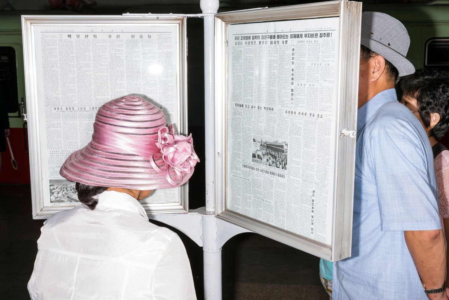 There are certainly dystopic elements in Pinckers’ images, like the enshrined chairs once graced by Kim Jong Il during public visits, now on permanent display behind glass. But these are sequenced with people smiling, socializing and learning in the classroom. And what’s clear from Osnos’ original article is that North Koreans spend just as much time puzzling over the hostile, stream-of-consciousness quips from Donald Trump as individuals outside their country spend wondering about their conditioned allegiance to a symbolic leader. Each scenario is bizarre in its own way, it’s just that the one that is further away, untouchable—foreign—is easier to deem less free. We are permitted to use language to speak about our situation, but can language override actions? Can it shape reality? It’s certainly valuable for identifying issues, but it doesn’t necessarily result in their upheaval. Freedom should never be conflated with familiarity. In fact, maybe freedom comes from uprooting this familiarity altogether, replacing it with a network of perspectives that go beyond language—a combination of words, visuals, feelings and all of our senses, into a dynamic infinite impression.