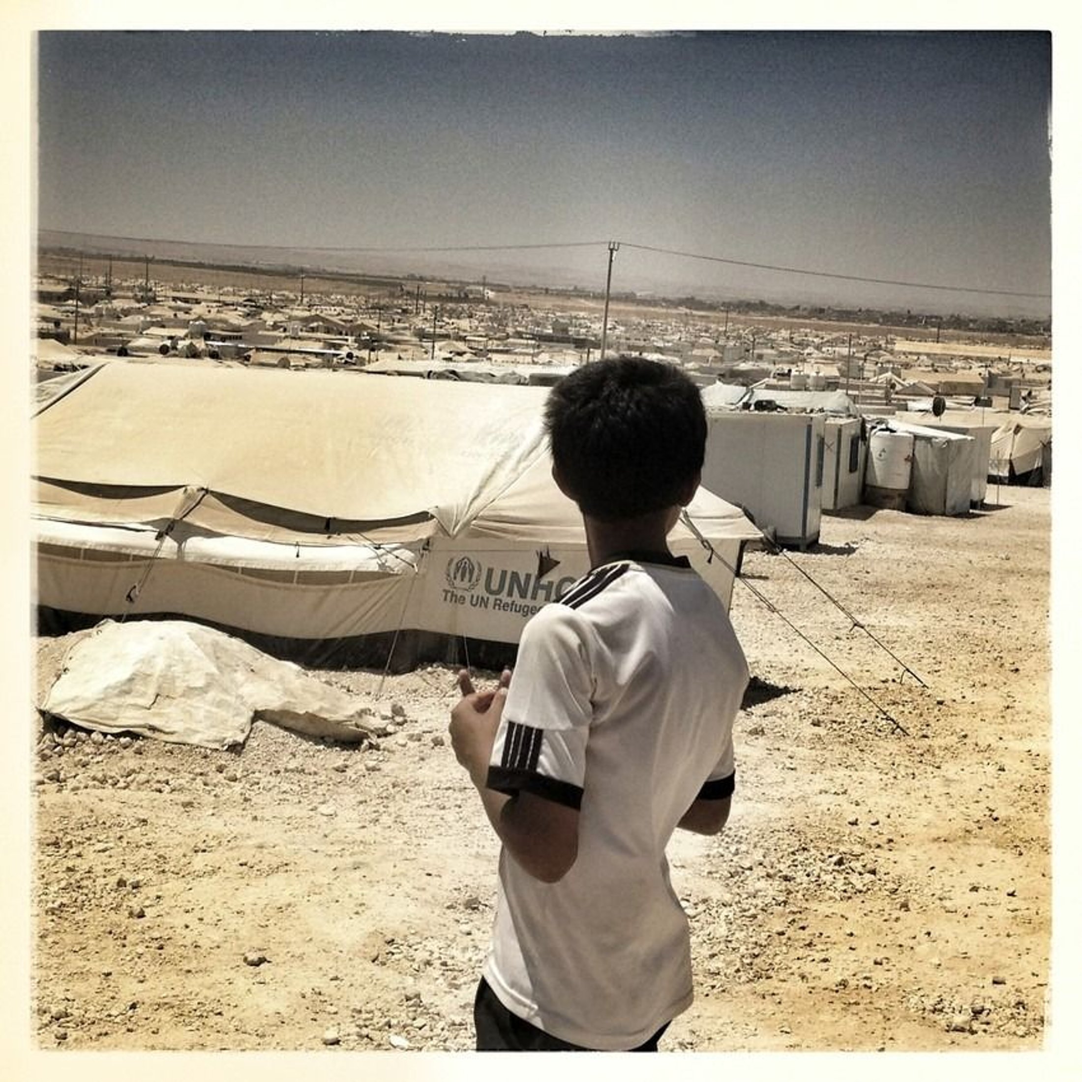 A young boy looks out over Za'atari. This photo was taken by Jana*, a 17 year old Syrian girl living in Za'atari refugee camp in Jordan © Save the Children