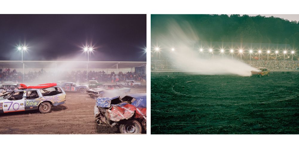 MI: “Wrecked” began one night in the summer of 2006 when I stumbled upon my first demolition derby in rural Pennsylvania. The sheer energy of these cars spewing flames and kicking up mud got my heart racing; I wanted to get as close as I could to the action. I ended up devoting three summers to finding and shooting demo derbies all over Pennsylvania, New Jersey and New York.