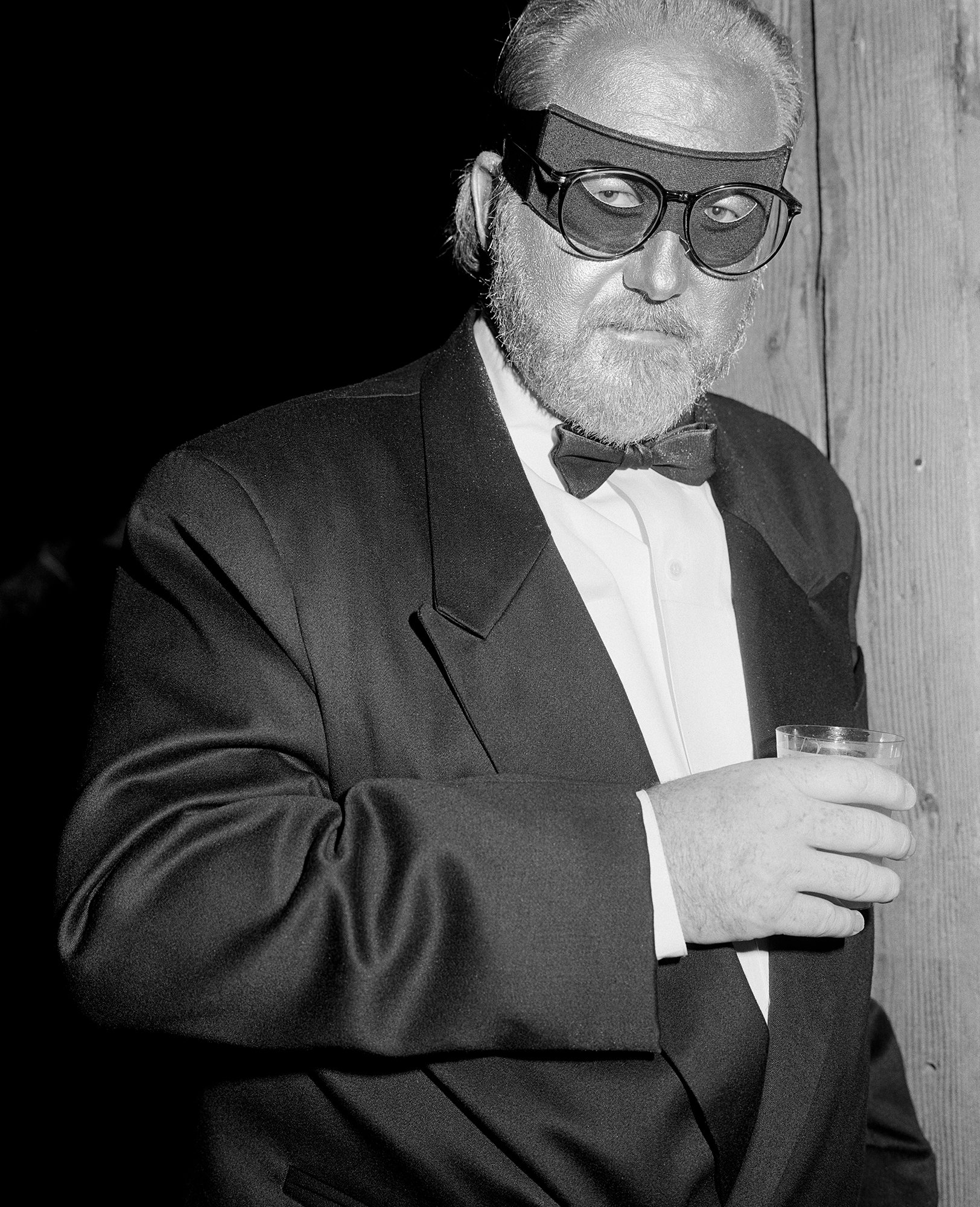 One of The Golden City’s most alluring qualities is that it opens in the daytime, and closes in the nighttime, with the last third of the book shot after dark. The switch happens directly after two consecutive images of old, run down doorways that seem to beckon us into the darkness. There’s something different about the book from here—a key change in atmosphere, offering a different side of the city. Here, we meet figures wearing masks, dancing in mostly empty bars, or alone out on the street, momentarily illuminated by Plumb’s flash. This cluster of images feels story-like and filmic in its powerful introduction of characters and symbols. These are the denizens of the city we’ve just journeyed through, and the people Plumb partied with back then; real folks in a city that is as gritty as it is golden.