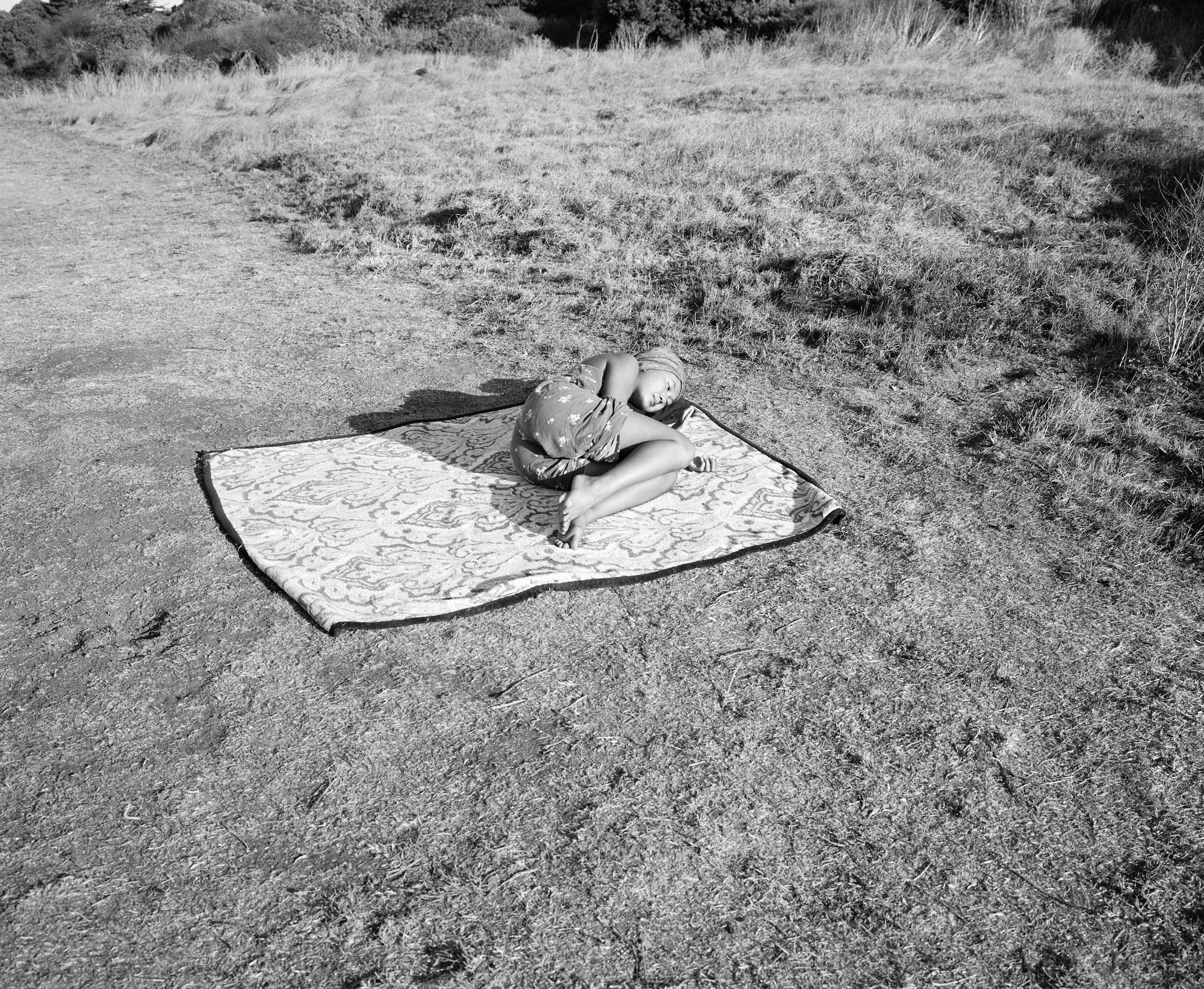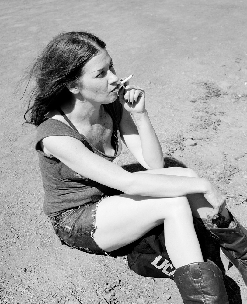 Meanwhile, just a few people populate this first sequence of images. In amongst abandoned cars and cardboard piles, one lady lies upon a blanket in the sun, while another sits having a cigarette on the floor, each of them quietly passing time. Most of the other people we see are looking out at the city from where they stand, their backs to the camera. Slowness seems to swell through these first pictures, as if the people moving among them are all watching, and waiting.