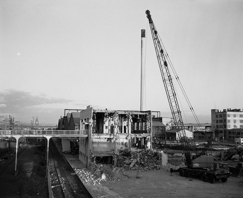 After this, just one image remains. Plumb closes the book with a picture of a crane, seemingly demolishing an abandoned building; one final vision of progress in an ever-changing city.