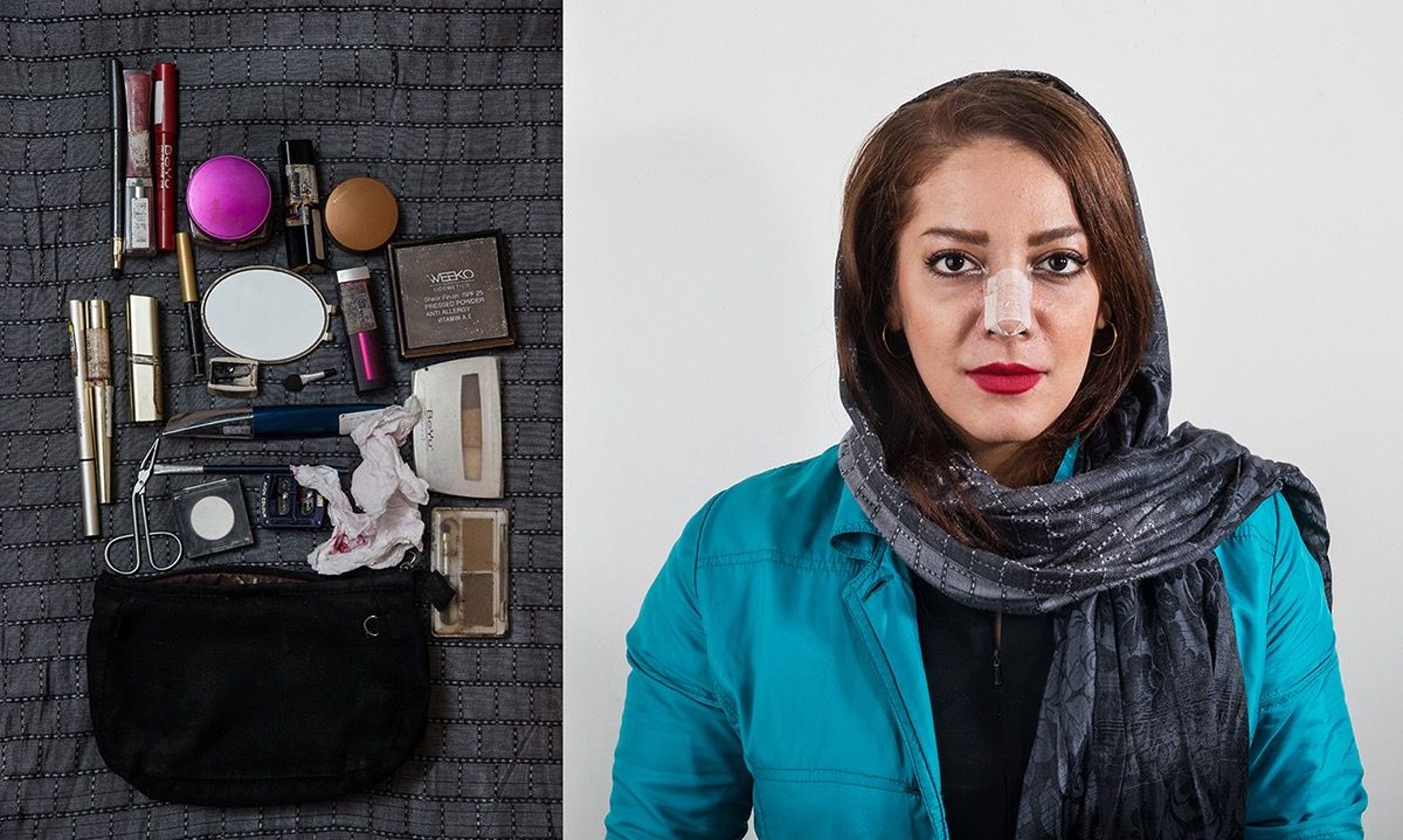 Iranian Makeup. Zahra Malekshahi, 22, Economics graduate. She started wearing makeup at 18 and usually does not carry many toiletries with her, though a few items are with her most of the time. She thinks that the reason for excessive use of makeup in Iran is the Hijab and the type of women's clothing in Iran. © Mona Hoobehfekr
