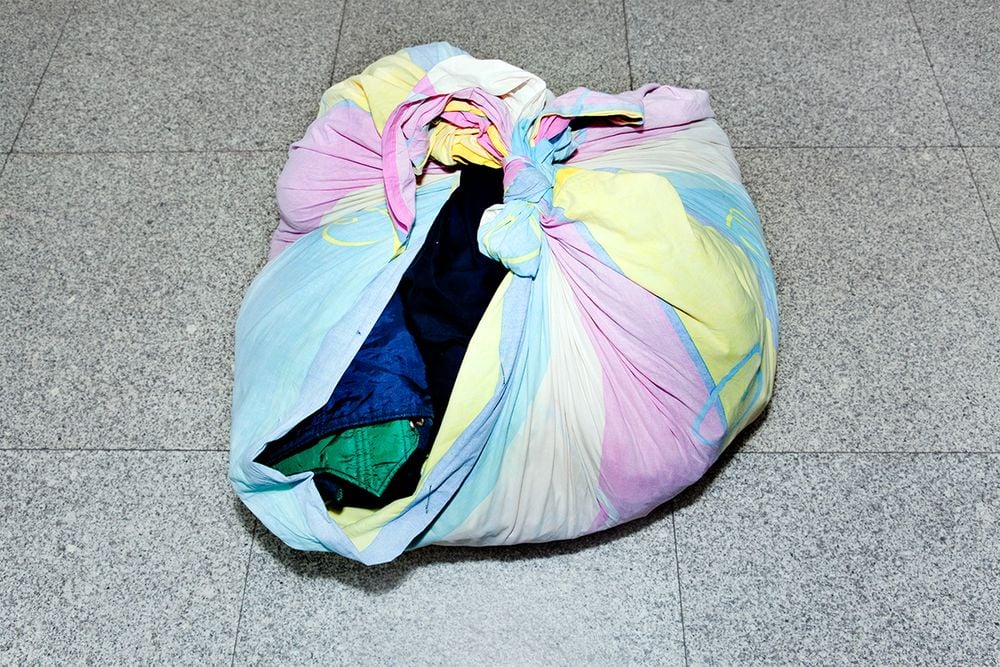 Shot at the main entrances and exits of Beijing East Railway Station and bus station Zhaogongkou, the city’s most important transport hubs, these images present the ad hoc luggage of migrant workers, most of whom are employed in the field of construction.