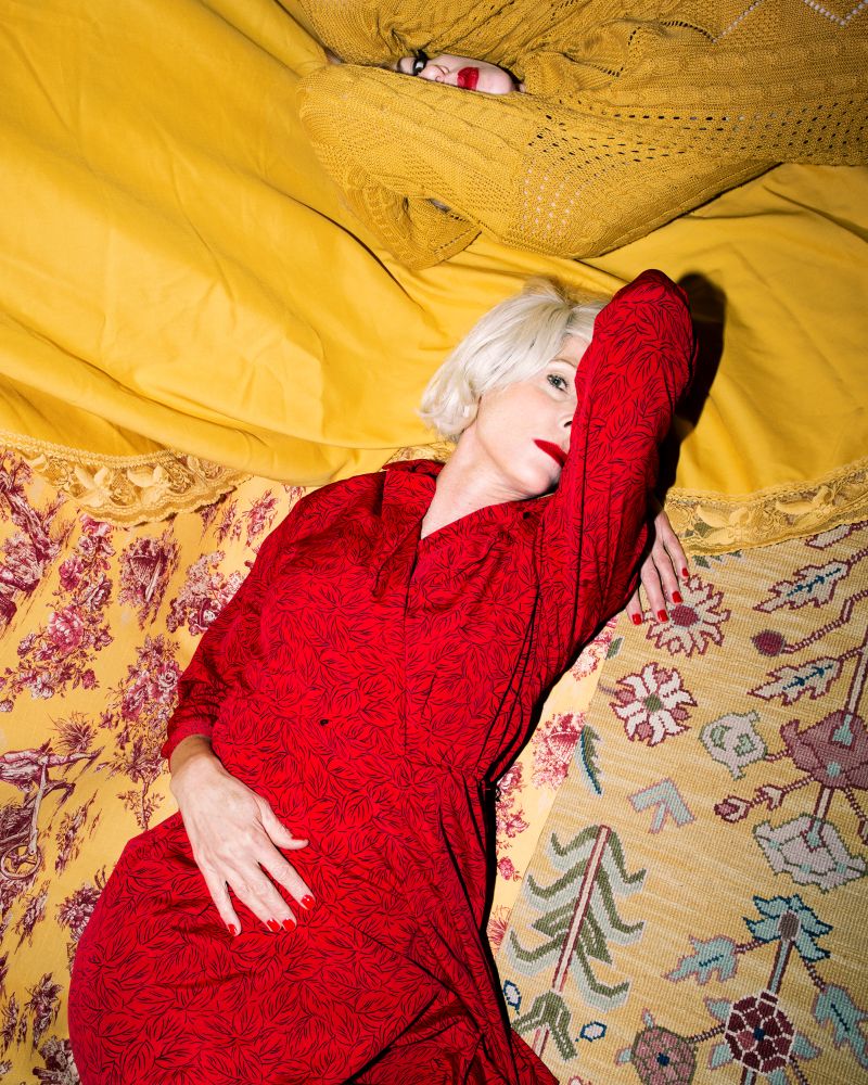 In all of these photos, Krick’s mom appears docile, the way a model in a magazine might—it seems like she looks at the camera when she’s told to, and pretends to worry when asked. Krick references the French fashion photographer Guy Bourdin through the use of bright, delectable colors and by multiplying the number of hands in an image or mimicking the spread of legs. And yet, Krick’s photographs are different from the typical images we see of women in fashion magazines. Krick can go further. Her gaze—the gaze of both a woman and a daughter—complicates what we’re seeing in a way that’s entirely different from Bourdin’s gaze. She even steps into the frame herself. In doing so, when she calls to Bourdin’s images, it doesn’t just feel referential—it feels aggressive. And because of that, the women in her photographs are more than just docile. They are fierce.