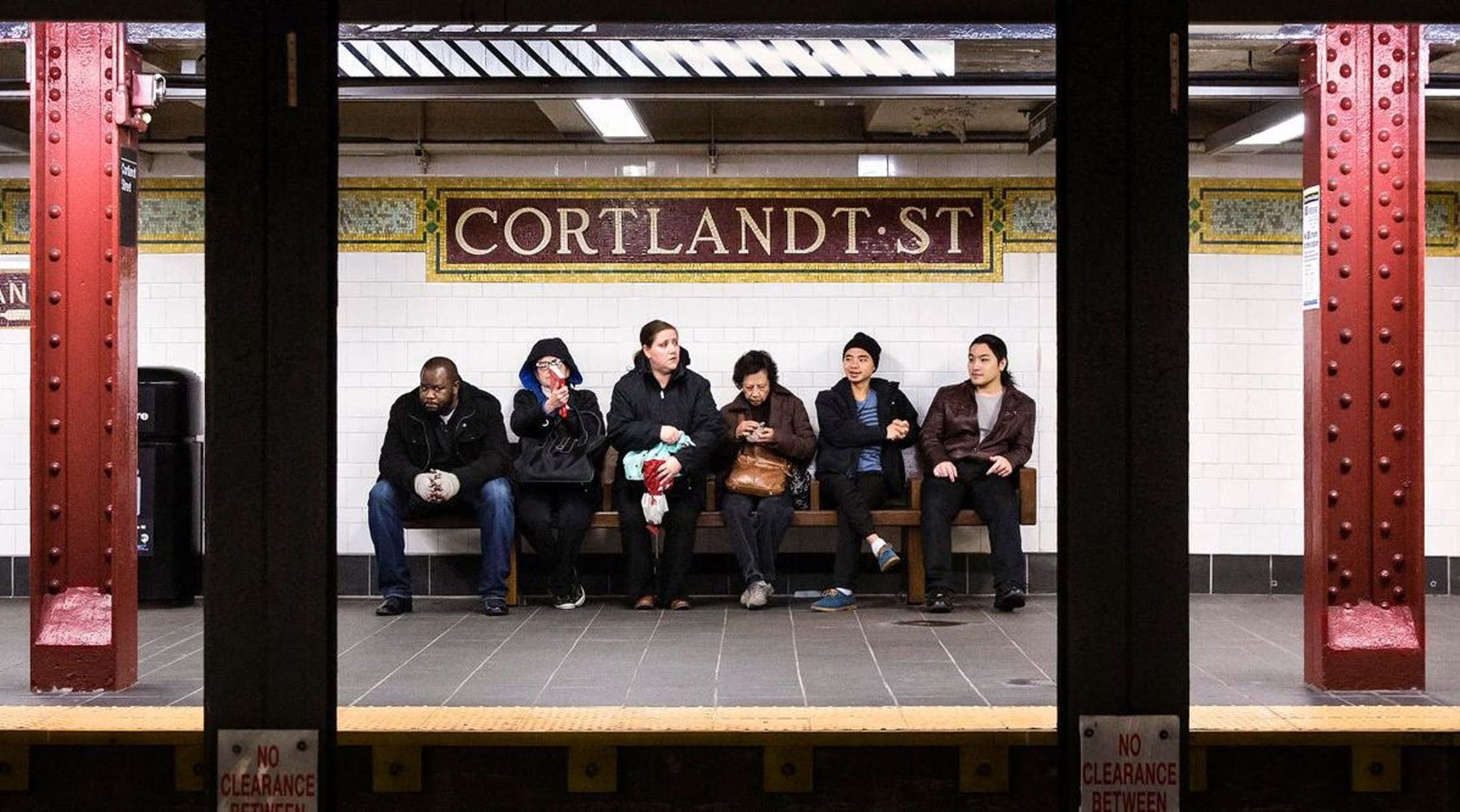 In Cortland St, 4:52pm, six people sit cheek-to-jowl on a bench, and yet the viewer does not perceive them as a group, but rather six individuals in uncomfortably close proximity. Dvir notes, “In New York, people talk about “personal space,” and this is really evident when you’re riding the subway. To me, personal space is a foreign concept, and something I find incredibly interesting from a visual perspective.”