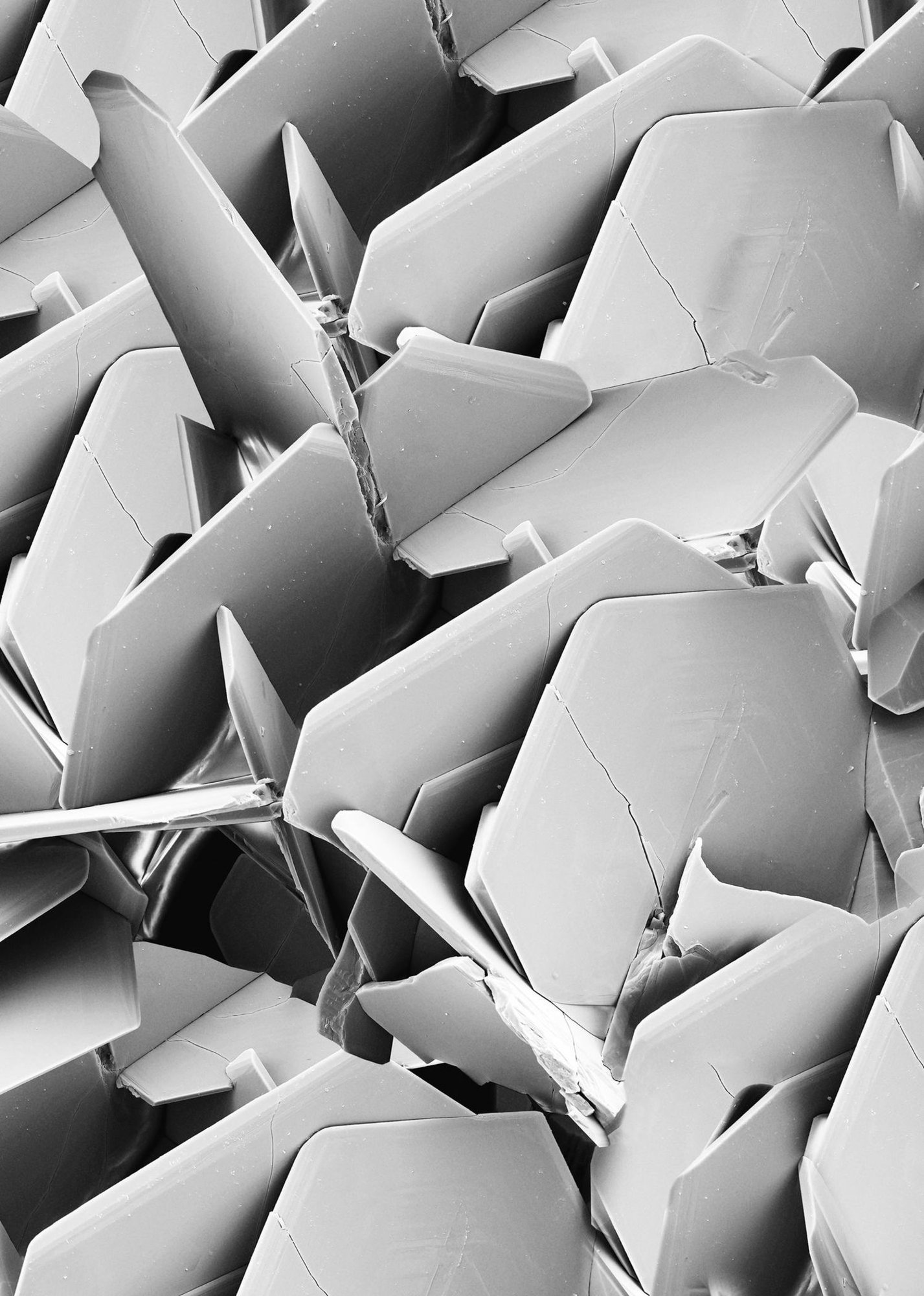 NP: I worked with two different geologists. One helped me create images with an electronic microscope. Because I didn’t have access to this technology, and because it’s really expensive to use if you don’t go through a university, he was really helpful and generous with his time. As images, they aren’t scientifically interesting, but in the project they become relevant because they are visually appealing to look at, which convinces the viewer they are legitimate even if they don’t have a real scientific explanation.