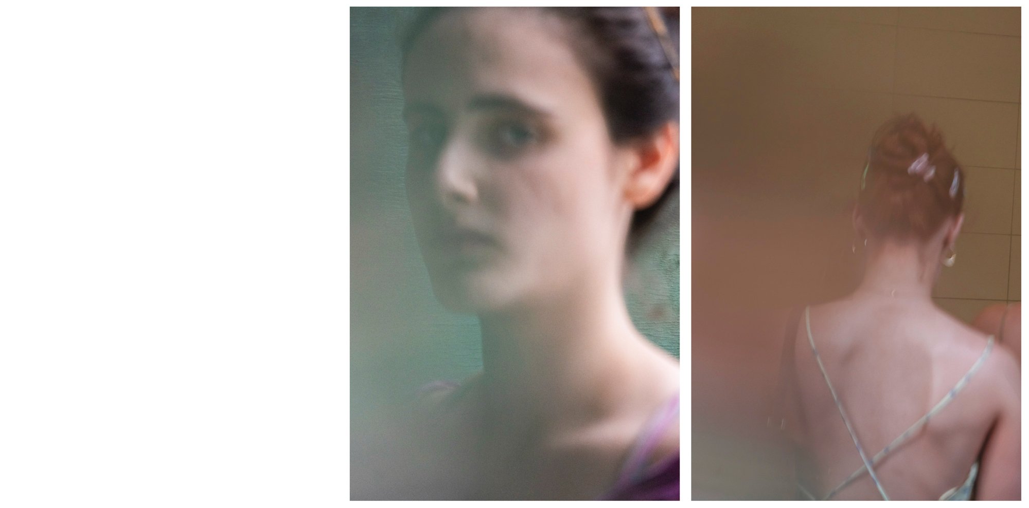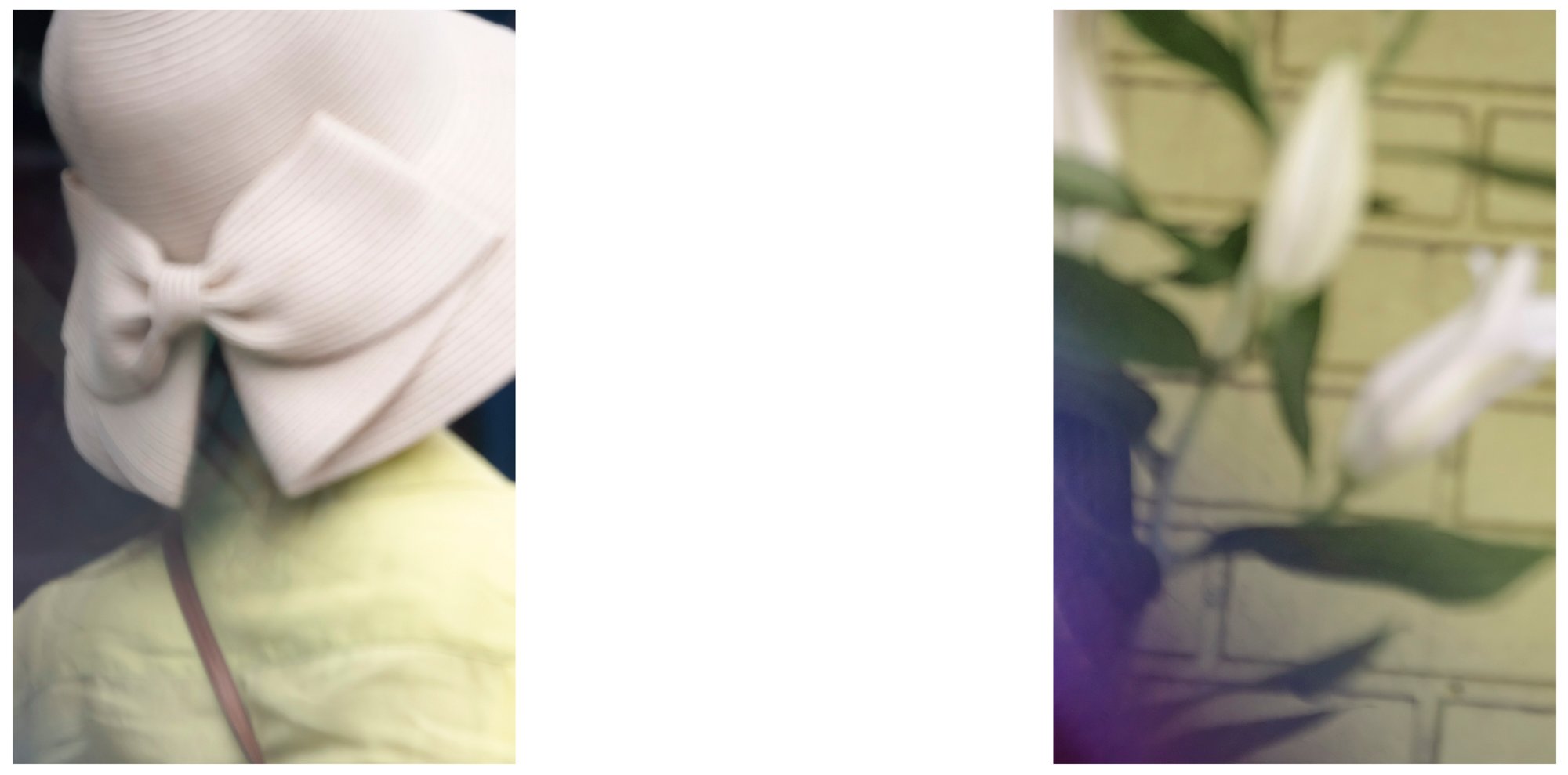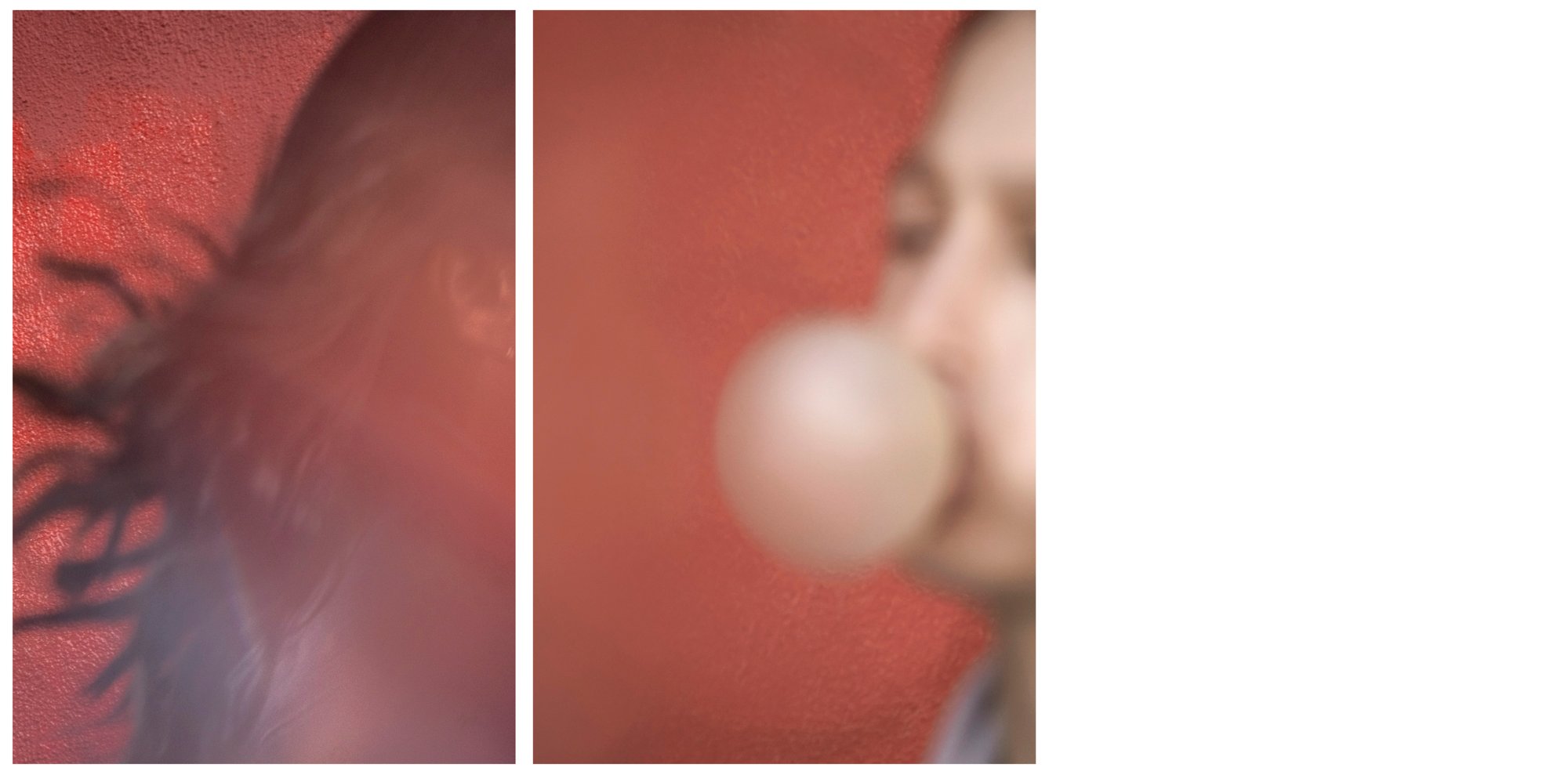 Here a blush of pink, there a wash of robin’s egg blue. A face lost in a terracotta fog and a decorative bow referenced in the supple form of a lily. Red lipstick against a creamy orange hue and two skinny straps crisscrossing a back. The wind blowing through dark hair and the peachy pink of a bubble before it bursts.