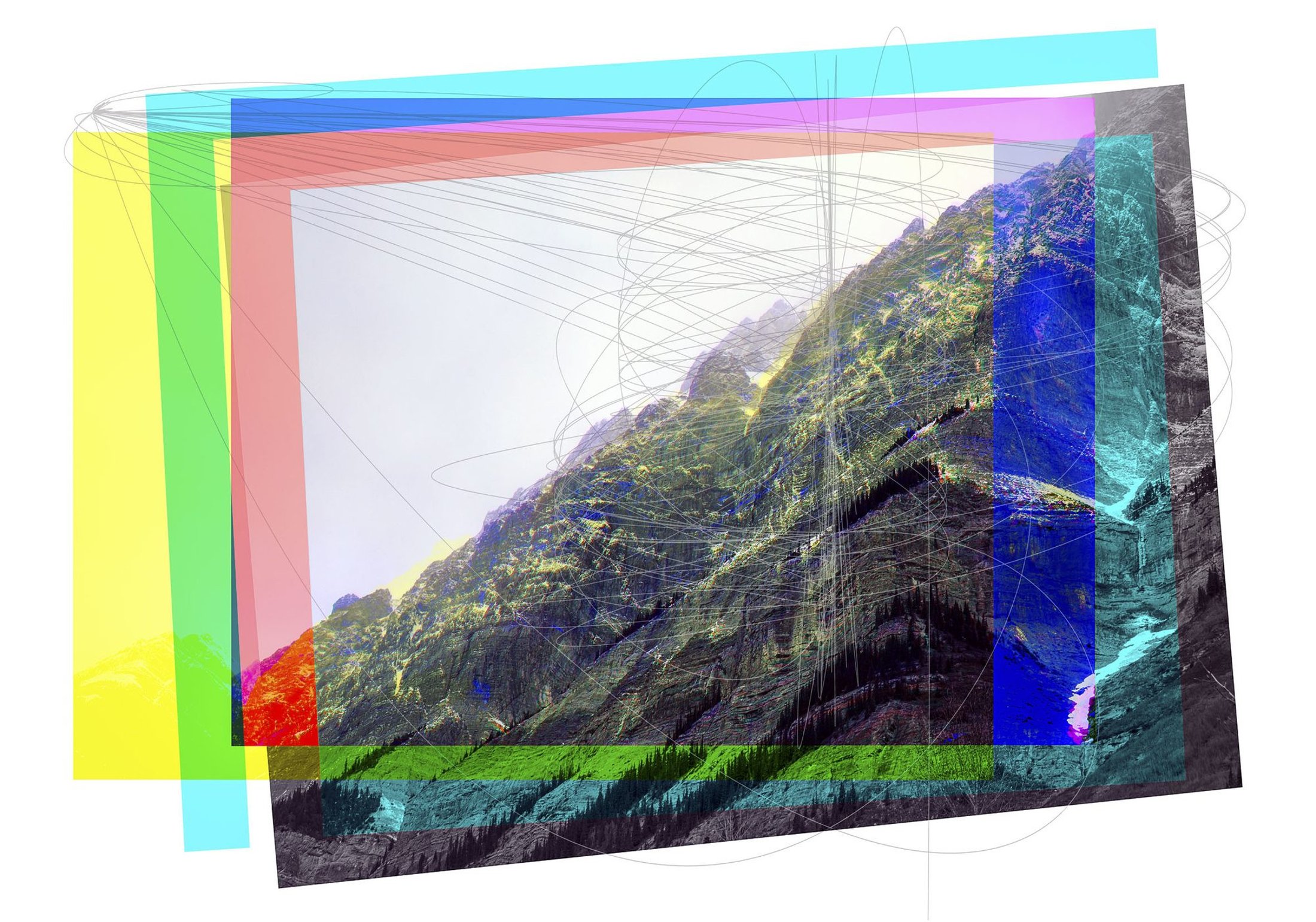 In Arnold Koroshegyi’s electroscopes, landscapes and data merge. He falls back on the practise of nineteenth-century geology investigations, where photography and scientific expeditions went hand in hand to discover the topography of the world. By integrating surveillance software in a layered photographic process, Koroshegyi was able to make a visual interpretation of the electromagnetic data in the atmosphere surrounding geographic formations. In ELECTROSCAPES the invisible flow of data, which ceaselessly trickles in remote, natural environments has been made visible with an aesthetic of abstract elements.