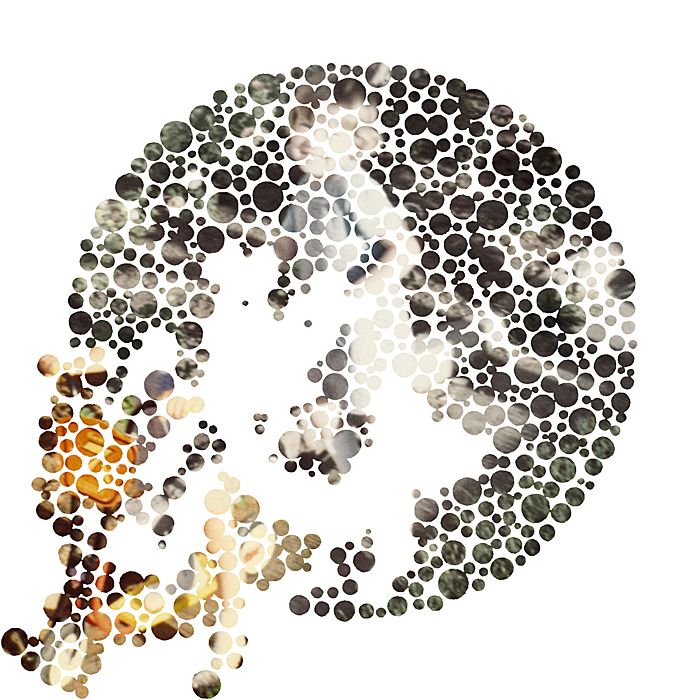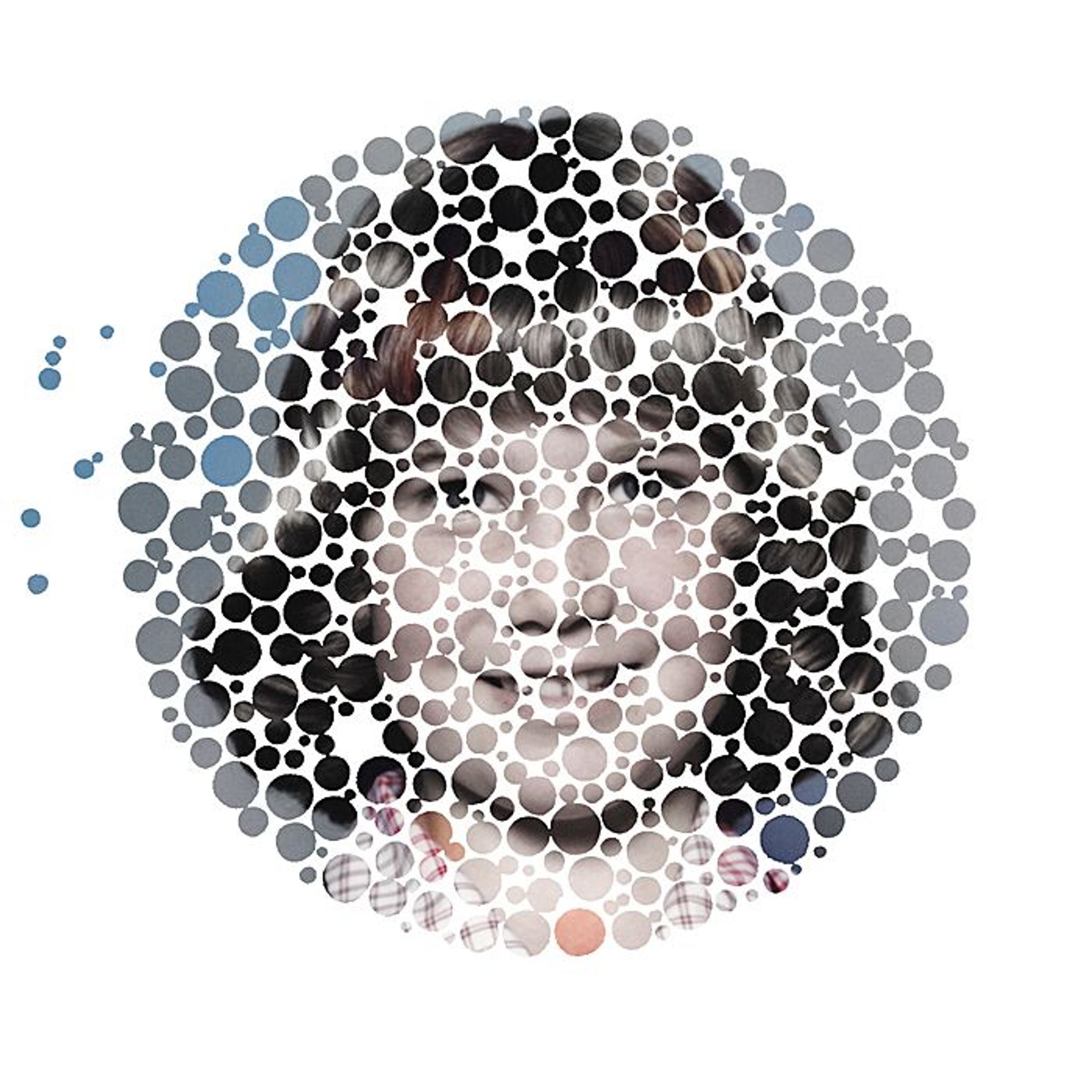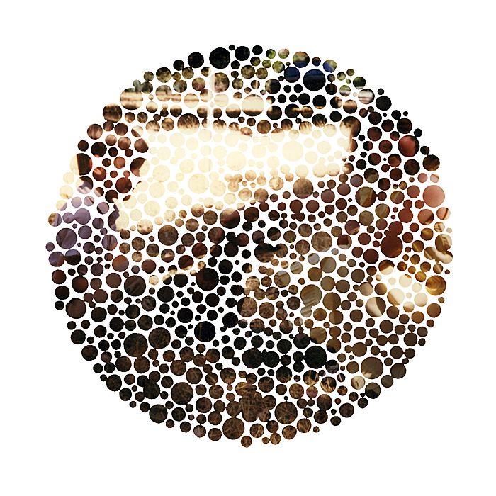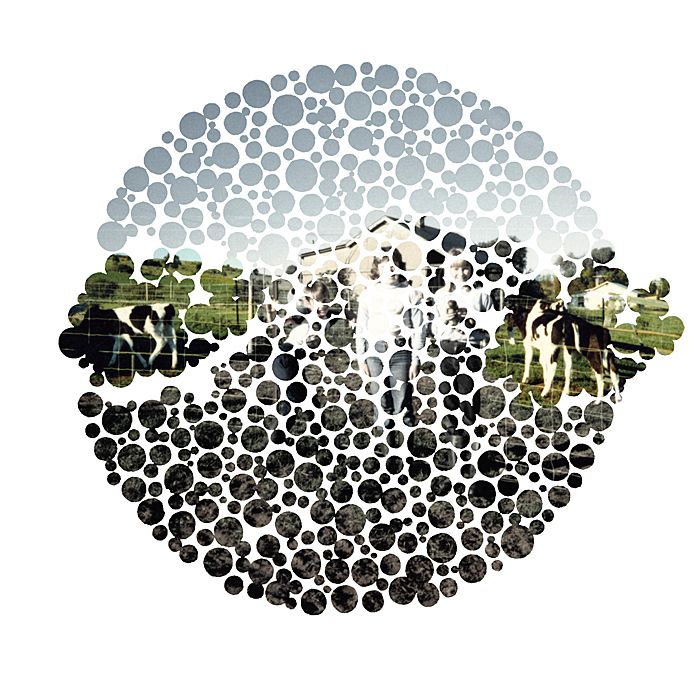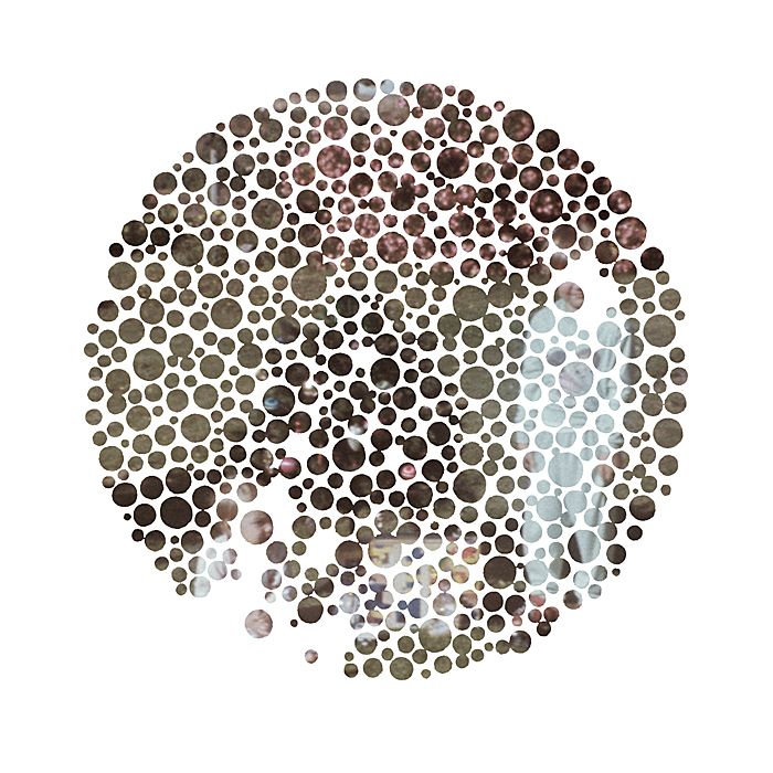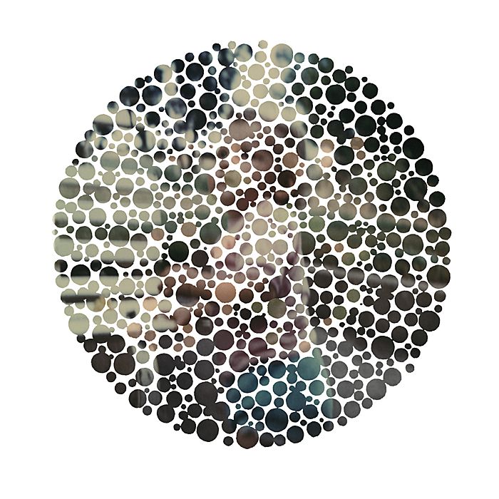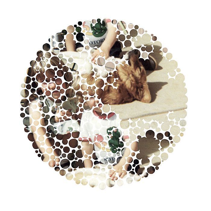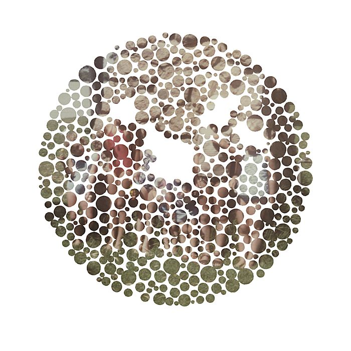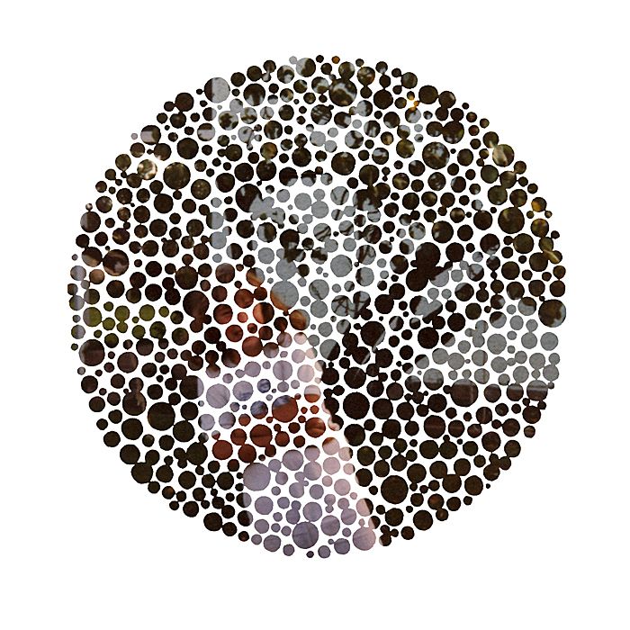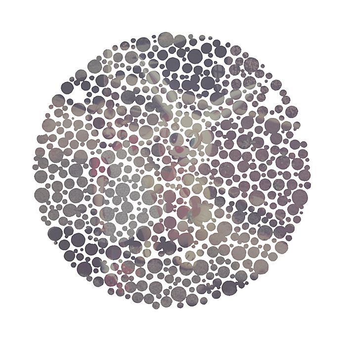 original plates from an Ishihara test book with family snapshots. A mutated