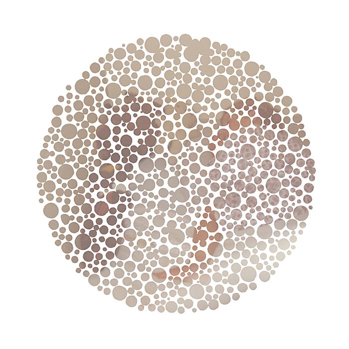 The Ishihara Color Test is the most common clinical test for red-green color vision deficiencies in humans. It comprises 38 plates, each containing a circle of dots randomized in color and size, which form a number that is visible to people with normal color vision. However, the number in the dots is invisible, or difficult to see, for those with a red-green color vision defect.