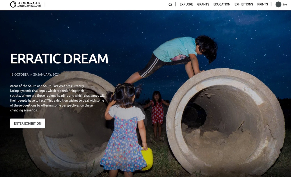 Smaller, independent spaces have been experimenting online for a number of years. PHmuseum is a curated online platform for contemporary photography. The selection for shows, according to curator Rocco Venezia, varies. “Most of the time it is a joint effort between us at PHmuseum and the invited curators, and other times we present shows which were already existing in other forms as is the case for Hunger, a collaboration on a very dynamic publishing initiative proposed by VOID, or a collaboration we are working on with International Women’s Media Foundation which will be presented in January.” In their current exhibition, Erratic Dream, they partnered with PannaFoto Institute to present the works of ten photographers documenting South and South-East Asia in times of monumental change.