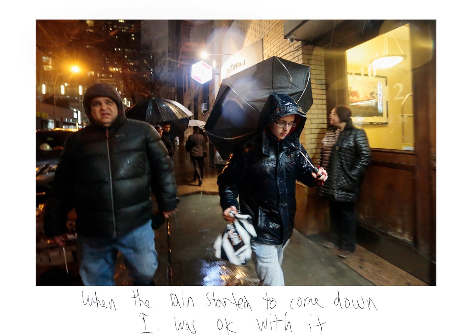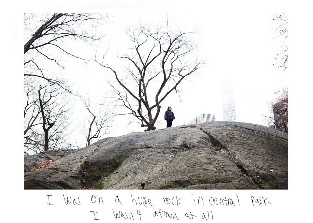 ‘I was standing on a huge rock in Central Park. I wasn’t afraid at all,’ he writes beneath one, while another reads ‘when the rain started to come down I was OK with it.’ These are some of Lefevre’s favourite pictures from the project. “Spending so much time photographing him has allowed me to have a much more intimate look at his daily life: his moments of happiness, his struggles, his relationships, and his overall journey from his early teenage years to manhood,” she says. “It is one thing to witness this as a sibling, but it is extra special when you have so many photographs that document them progressing through life. One of my favourite things I’ve learned about Liam is his optimistic attitude towards life. Even if things don’t go according to plan, he always chooses to see the best in a situation and he doesn’t let things bother him.”