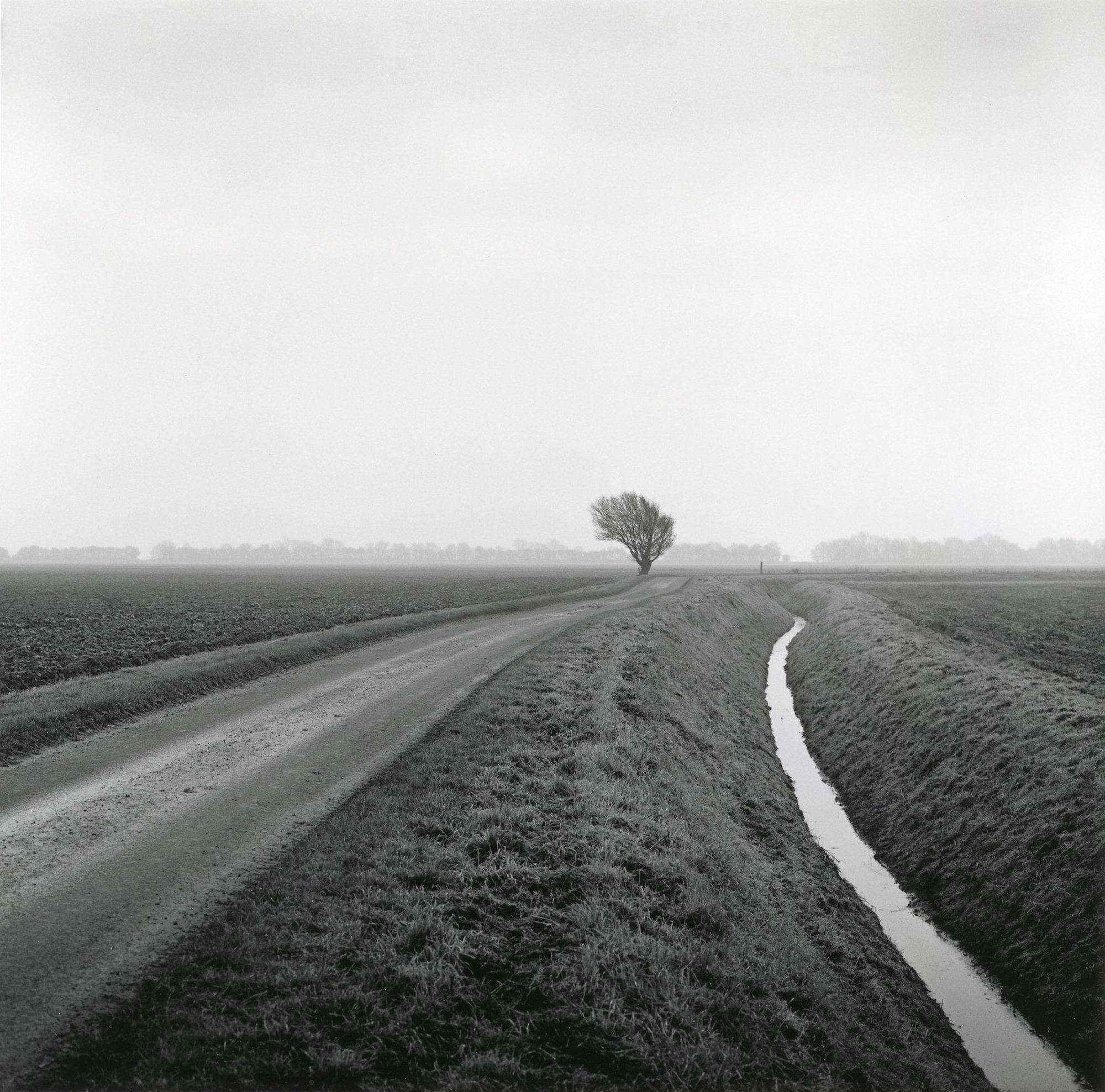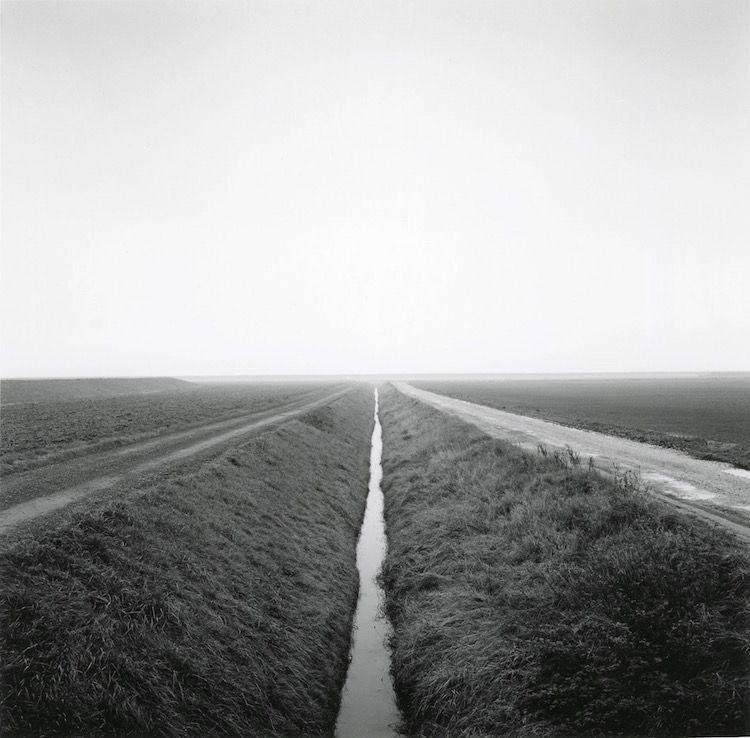 Finally, in his latest series, titled “Drained,” Hart reveals to us a unique area near “The Wash” in East Anglia. This odd confluence of estuaries, along the coast of a square bay, lies barely above sea level. Over time, the land has been reclaimed from the water (hence the series’ title), while other sites have been steadily covered over with sediment. Settlements that were once coastal are now inland; amidst the seeming eternal calm, the place is also site to ceaseless, if subtle, change. The work also represents a subtle evolution in Hart’s investigation of our relationship with nature. Man, here, is briefly in control. But as in “Farmed,” the duration of this dominion remains under question.