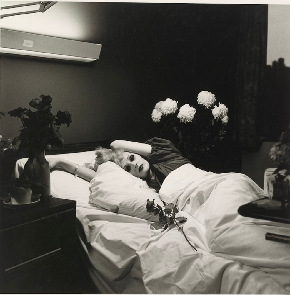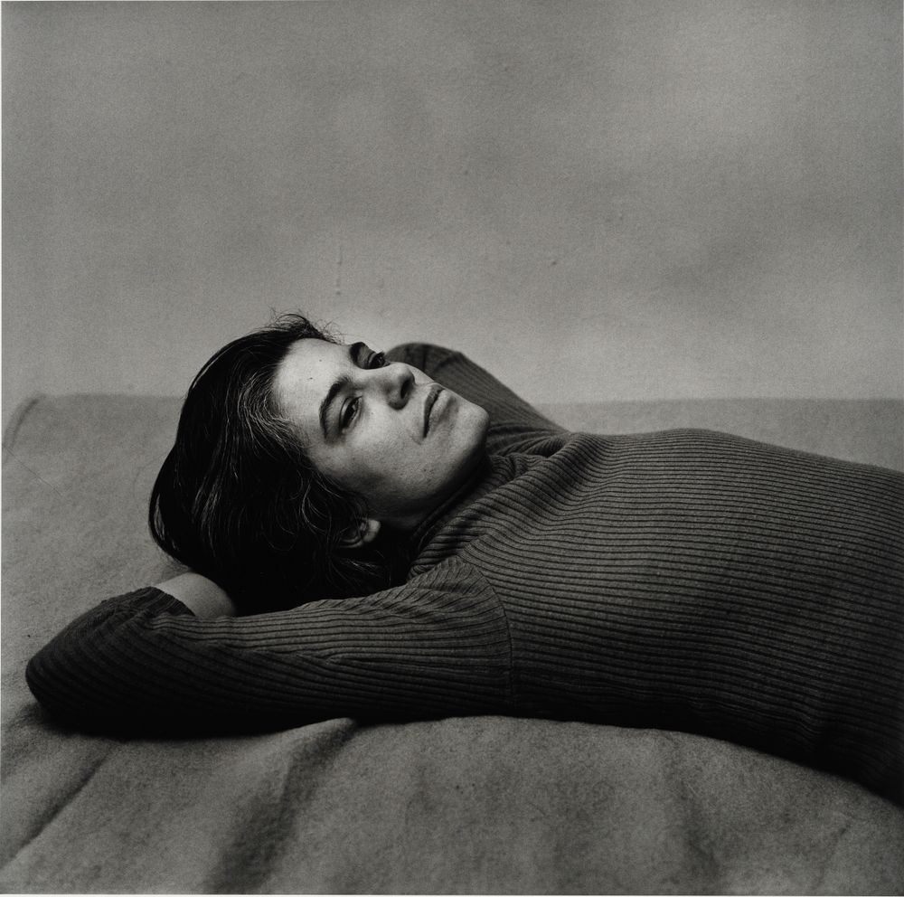 The openness of the subjects in these photographs inevitably gives off a sense of their vulnerability. Many of the people looking into Hujar’s lens appear to have let their guard down. In fact, the subjects are often captured in varying states of repose. Susan Sontag’s head is resting in her arms, and Fran Lebowitz supports herself on her elbows in bed. In the photograph Bouche Walker (Reggie’s Dog) (1981), a Boxer sits with splayed legs, resting the back of his body on one hip.