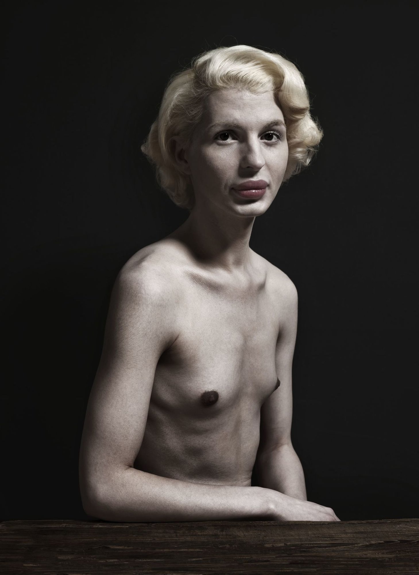 Adjoining Maybe, we find work from across Toledano’s decade-long oeuvre—some 160 prints are presented in total. The series on display range from photographs (and stories) of phone sex operators (Phonesex) to dramatically stylized portraits of people who have undergone major plastic surgery (A New Kind of Beauty). These bodies of work speak to Toledano’s preoccupation with self-image and presentation. By photographing phonesex operators in their homes, we witness the gap between fantasy and visible reality. In the portraits of plastic surgery, we question what value external appearance will have in a future where everyone has the ability to push their beauty towards some extreme, imaginary ideal.