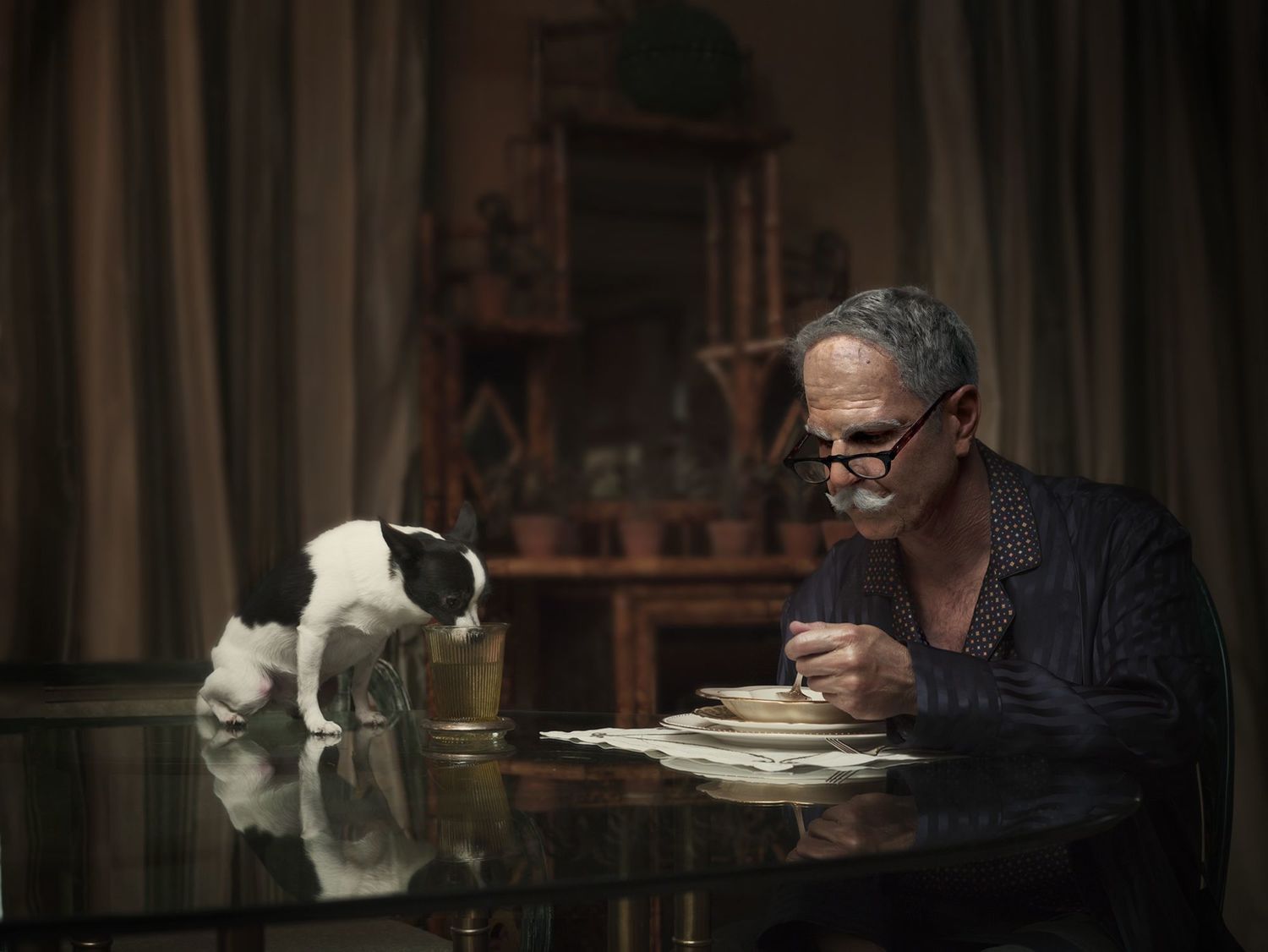 In the festival’s flagship exhibition, Maybe, we find that Toledano has imagined what his future could hold. But rather than stopping at just one future, Toledano went ahead and imagined dozens of different possible futures for himself: a homeless man, an Upper East Side socialite, a celebrity, a suicide victim and so on. While the very idea of photographing the future seems impossible—after all, the moment after a camera has clicked, the image it created instantaneously falls into the past—Toledano was undaunted. He called upon sources ranging from psychic mediums to DNA testing in order to imagine the shape of things to come and to face the existential fear of aging, head-on.