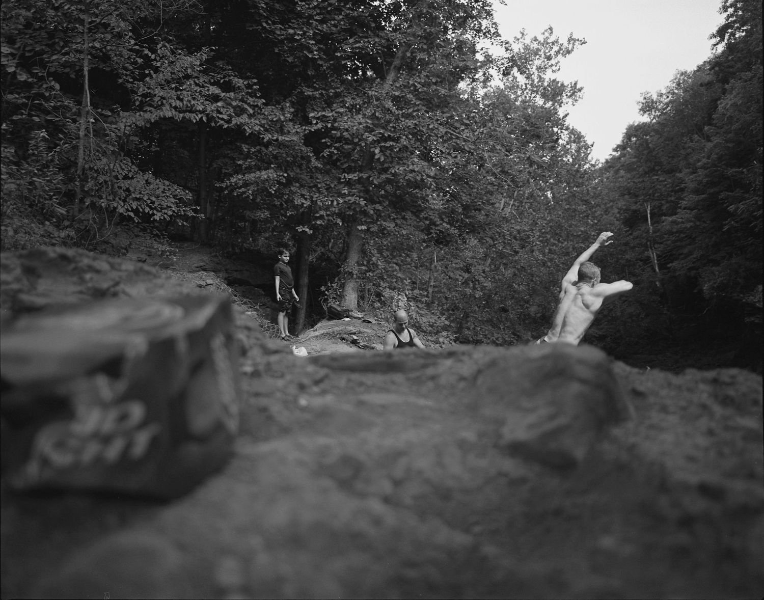RM: It started organically, the way everything in my life starts. It’s where I live—I knew there were creaks and tributaries in the area, but I didn’t know there were these kids jumping from 60-foot ledges. I didn’t know that they had become this gathering place, and that I would respond to it the way I did. After the first year of shooting, I thought I had a book already. But then I spent the whole winter editing. You start with 80 pictures that you feel are really strong. By the time you’ve worked them into different things, you’re down to 12. I went back for a second year, and then it ended up being three years.