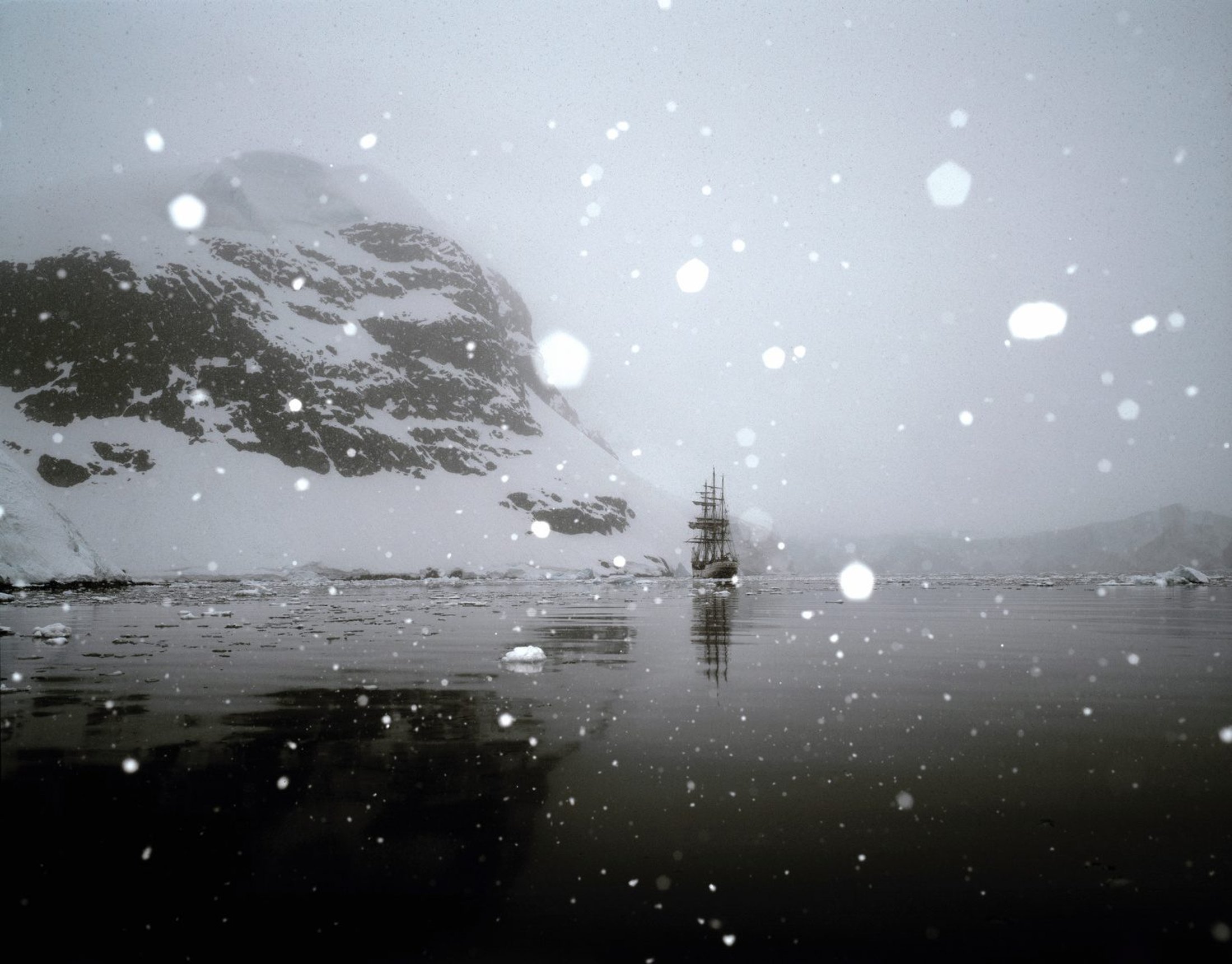 The calm misty weather gives me a sense of desolation and makes the world feel smaller. The slow rate of traveling by sailing ship influences my way of taking photographs: searching for stillness, harmony and tragedy in the landscape. In search of beauty, the beauty of emptiness and cold.