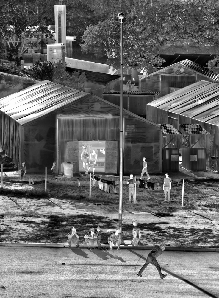 The Castle is a work of somatic surveillance designed to disorientate, visually and cognitively. Individuals and groups are rendered as white shapes, ghostly hallucinations where faces become bleached masks. The pictorial perplexity this creates indicates not some breakdown in the neural system, or some otherworldly experience, but a disconnect at the societal level. The nocturnal ambience that inhabits the daytime photographs conveys the sense that something is fundamentally not right here.