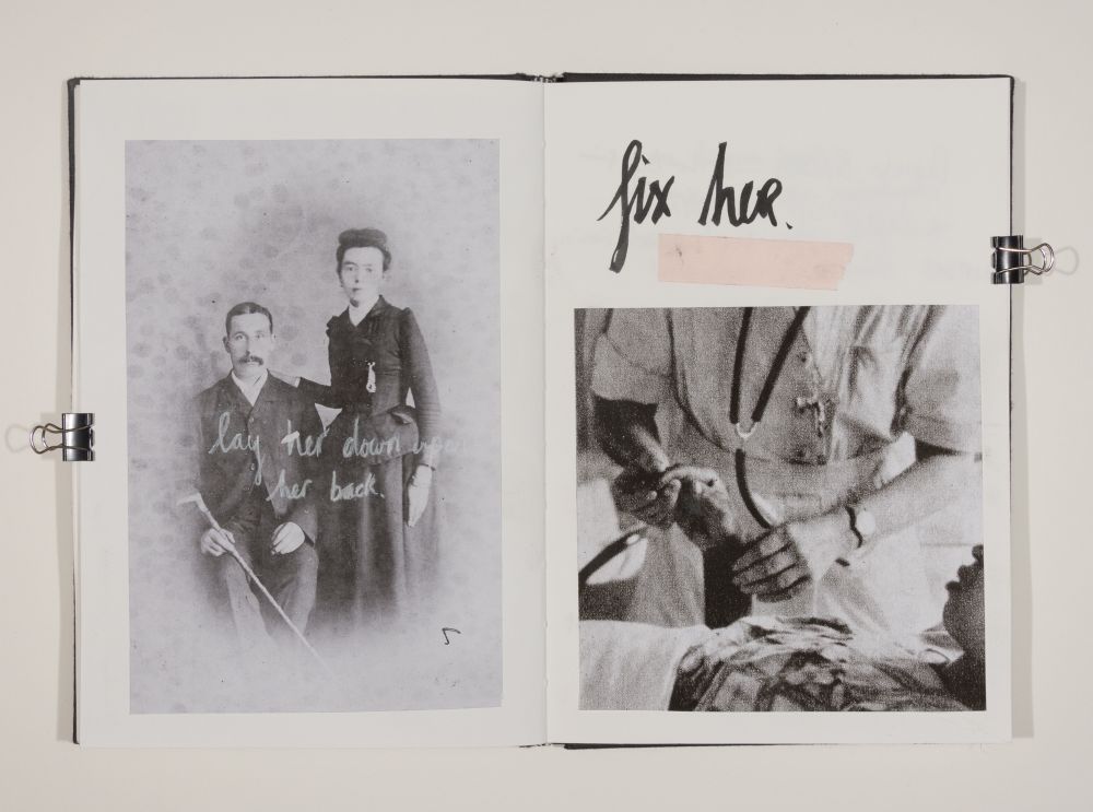 Catalyzed by her frustration with biased medical conduct, Dublin-based artist Róisín White started researching the history of women’s mistreatment and misdiagnosis. Her resulting project, Lay Her Down Upon Her Back, is a mixed-media exploration of the Rest Cure: a nineteenth-century treatment prescribed to women to remedy a range of gender-specific ‘problems’, including depression and ‘nervousness’. The Cure required the isolation of women for up to six months—in bed, without stimulus or company, accompanied by a force-fed high fat diet. In order to make this forgotten history tangible, White explores its many facets through intensive research, her personal collection of found photographs, and contemporary prints that embody her own visceral analysis of the treatment.