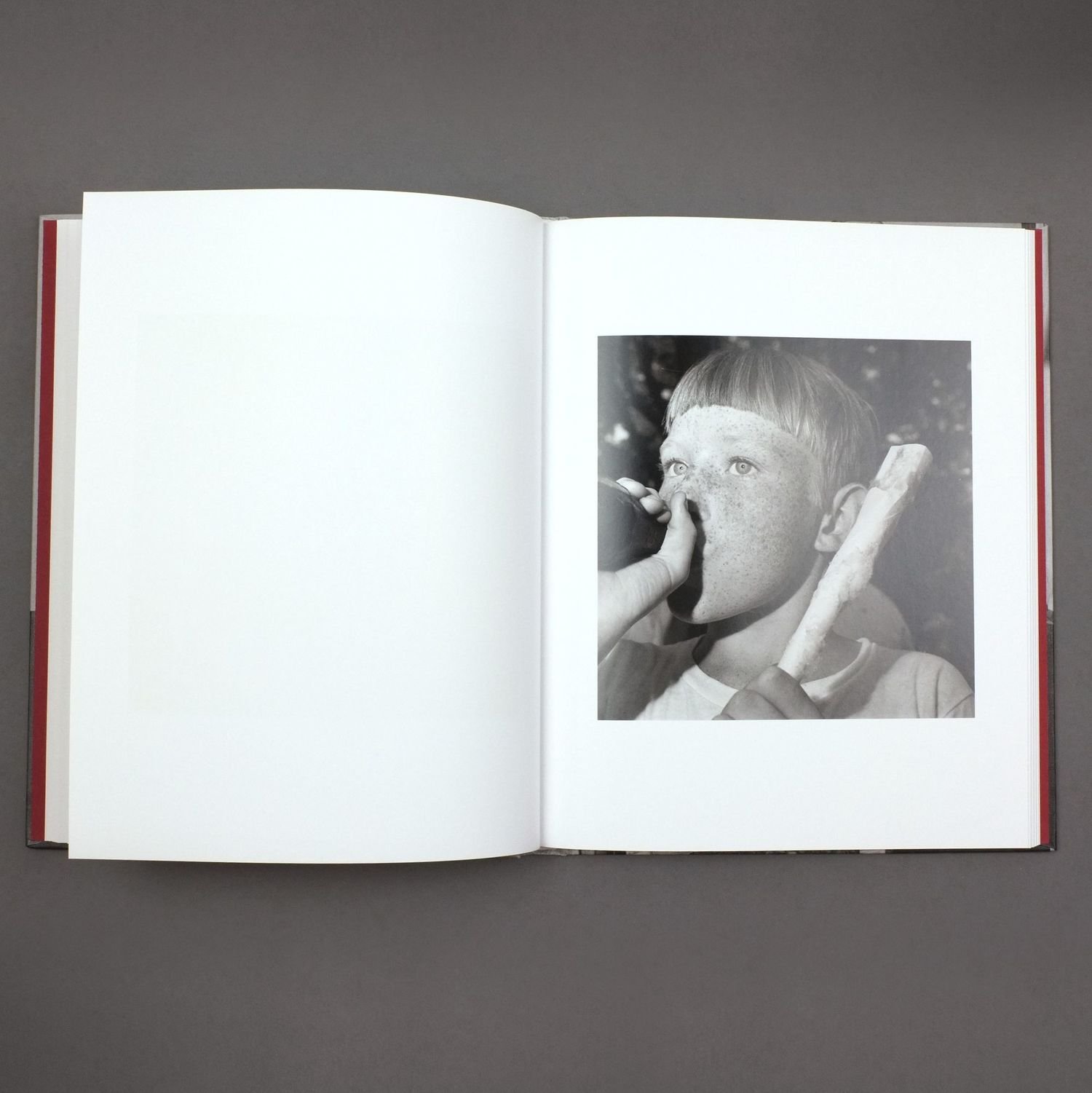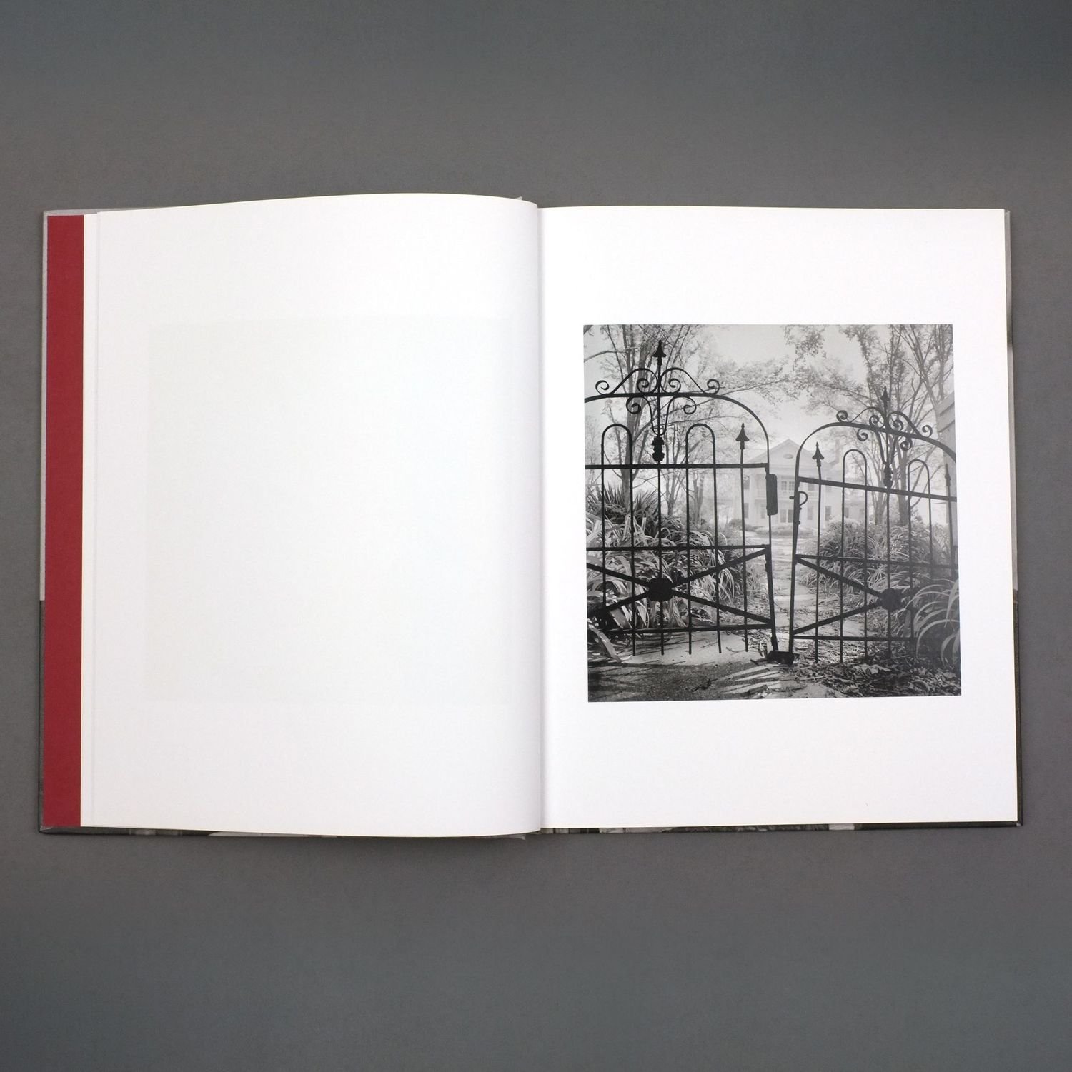 Broken dolls were among Fox Solomon’s earliest subjects, and after the initial belt buckle plate and title page, the photo sequence opens with a haunted-looking white woman—horror doll-like in a frilly bonnet with unblinking eyes and a frozen smile. With one square monochromatic image per spread, Fox Solomon’s story unfolds, manifested in portraits of people and scenes of the post-Jim Crow South—memories of antebellum Dixie alongside a possible future of integration and racial harmony.